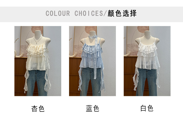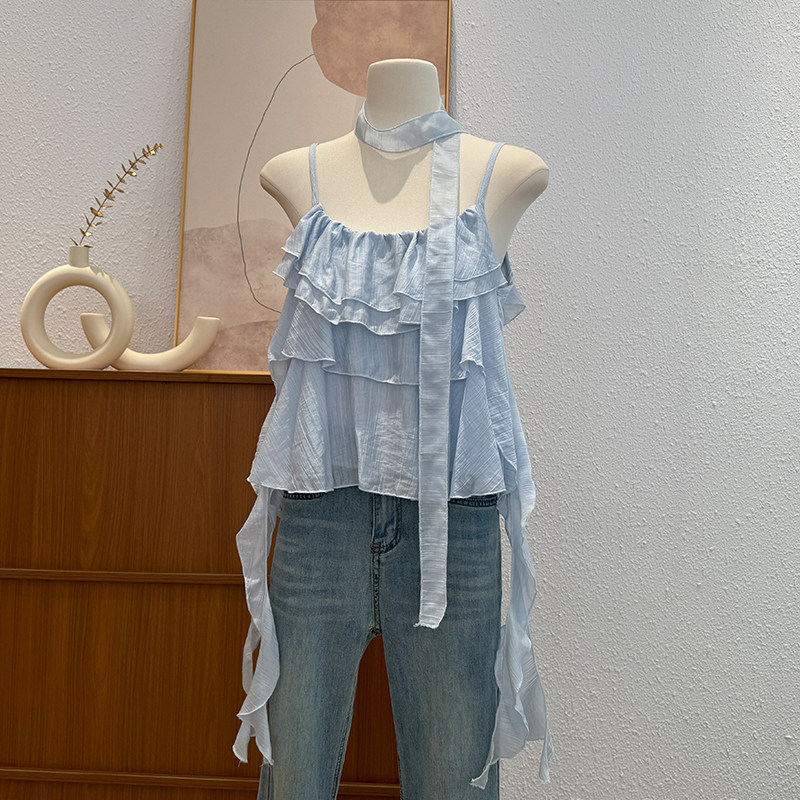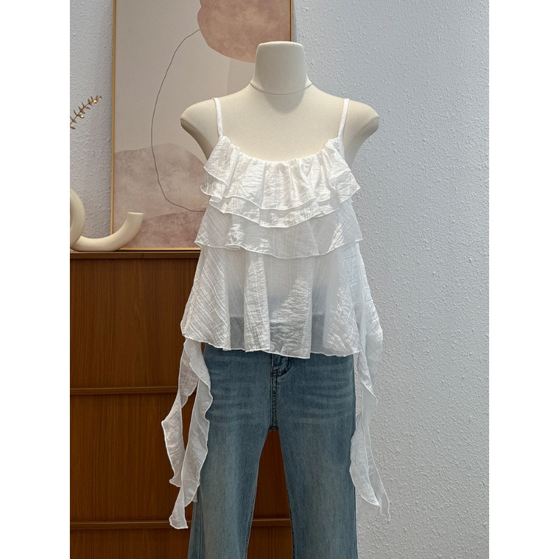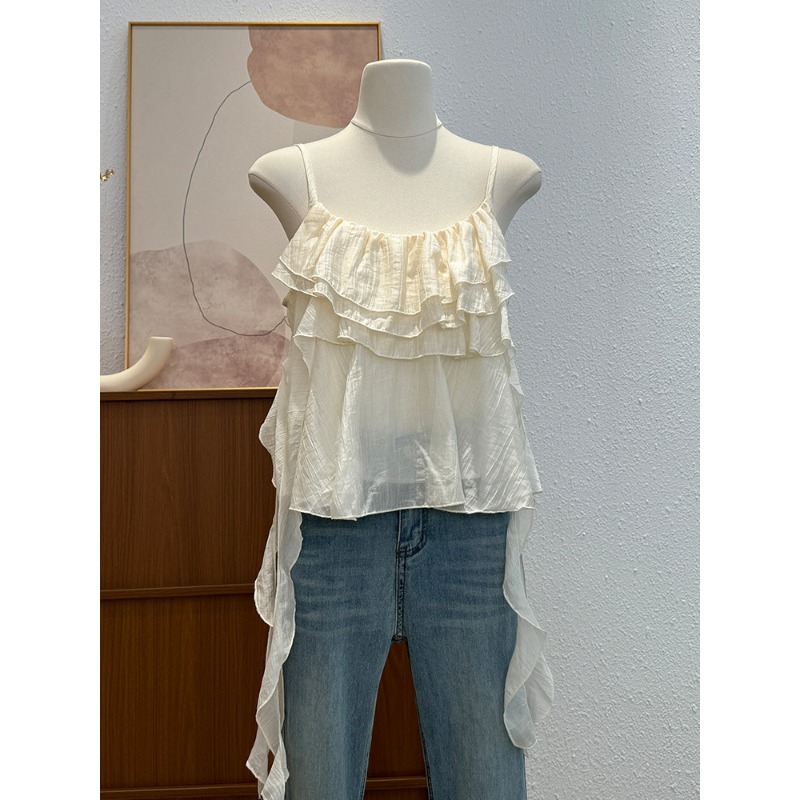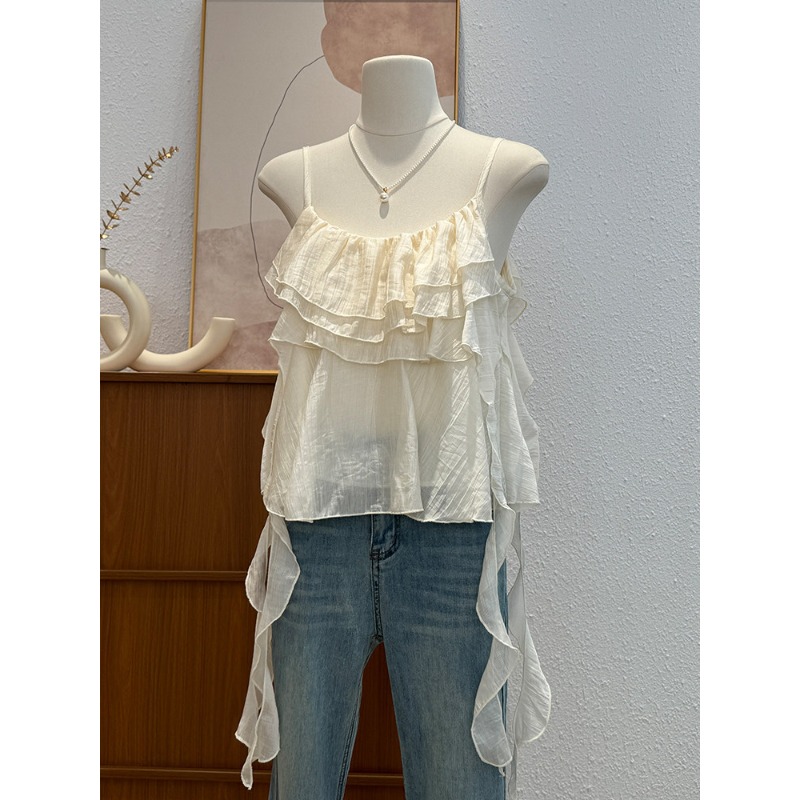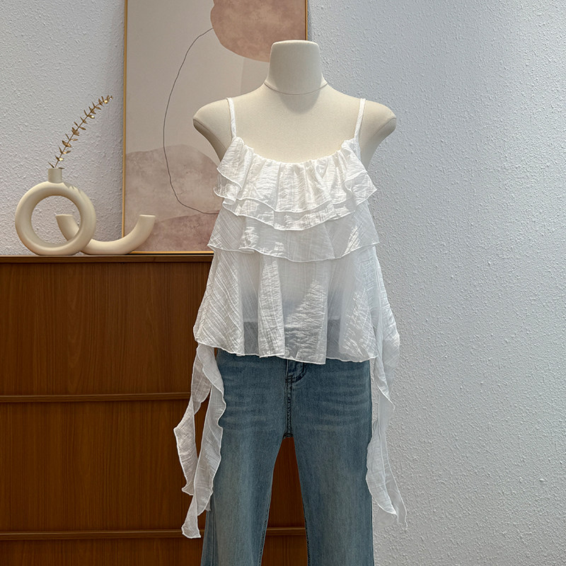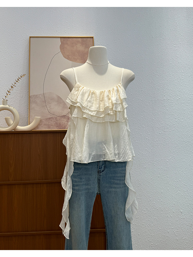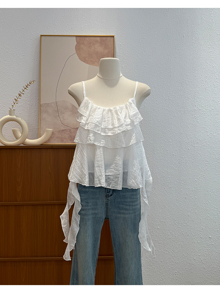 한국 스타일 프릴 불규칙 캐미솔 2026 여름 새로운 외국 가스 연령 감소 다용도 고유 한 맨위 트렌디