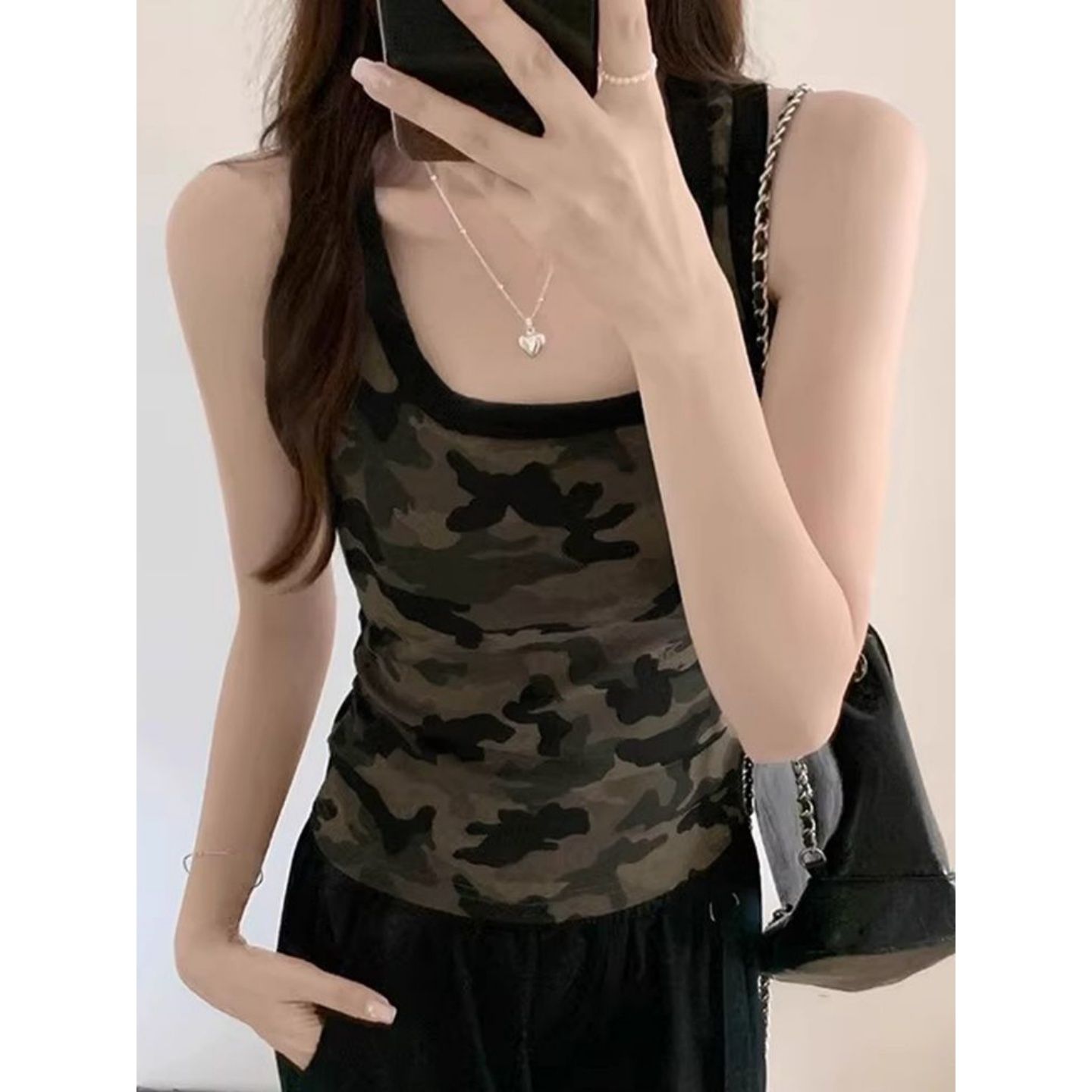 경관 그림 오스트리아 세대 서울 좋은 면 1 1 리브 아메리칸 핫걸 쇼트 스타일 카모플라주 캐미솔 여름 새로운