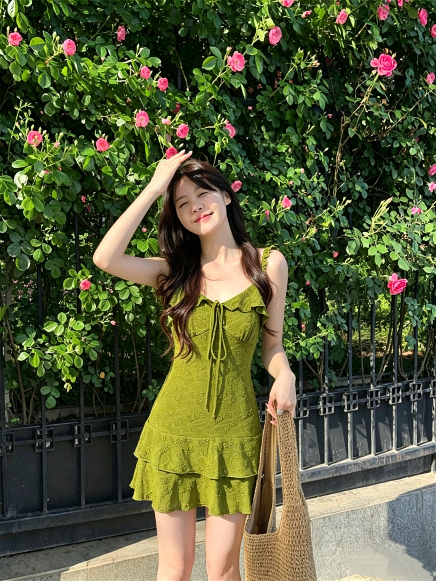 실사 정가 달콤함 휴가 바람 홀로우 아웃 스택 착용 조끼 원피스 레이스 슬립 인사이드 가져 가라. 점프 슈트 치마 세트