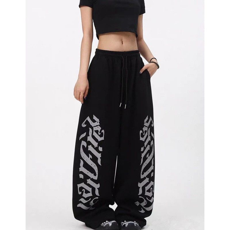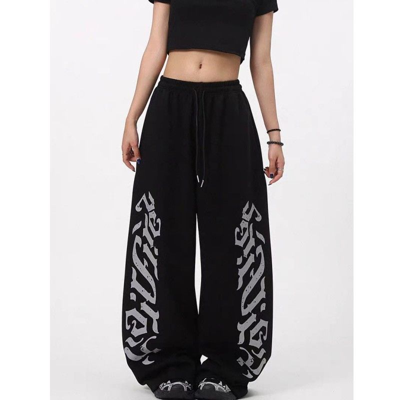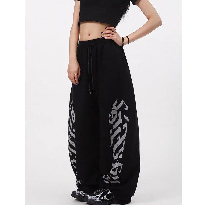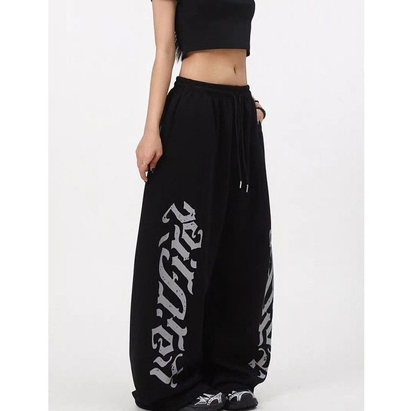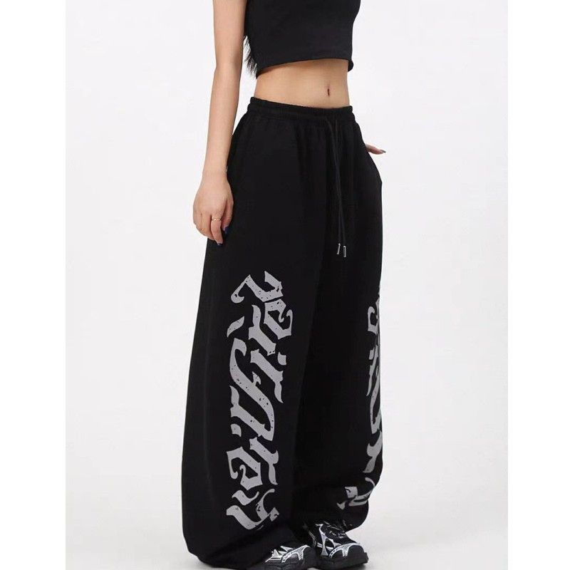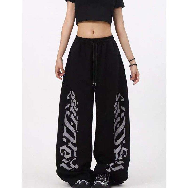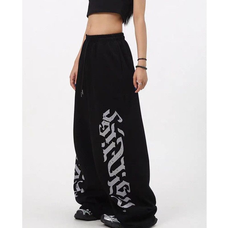 아메리칸 알파벳 프린트 모통이 칼 캐주얼 바지 여성 새로운 hipho 스트리트 댄스 와이드 레그 팬츠 루즈핏 웃음 하 알파벳 바지