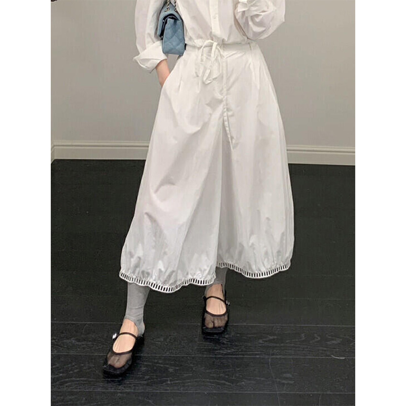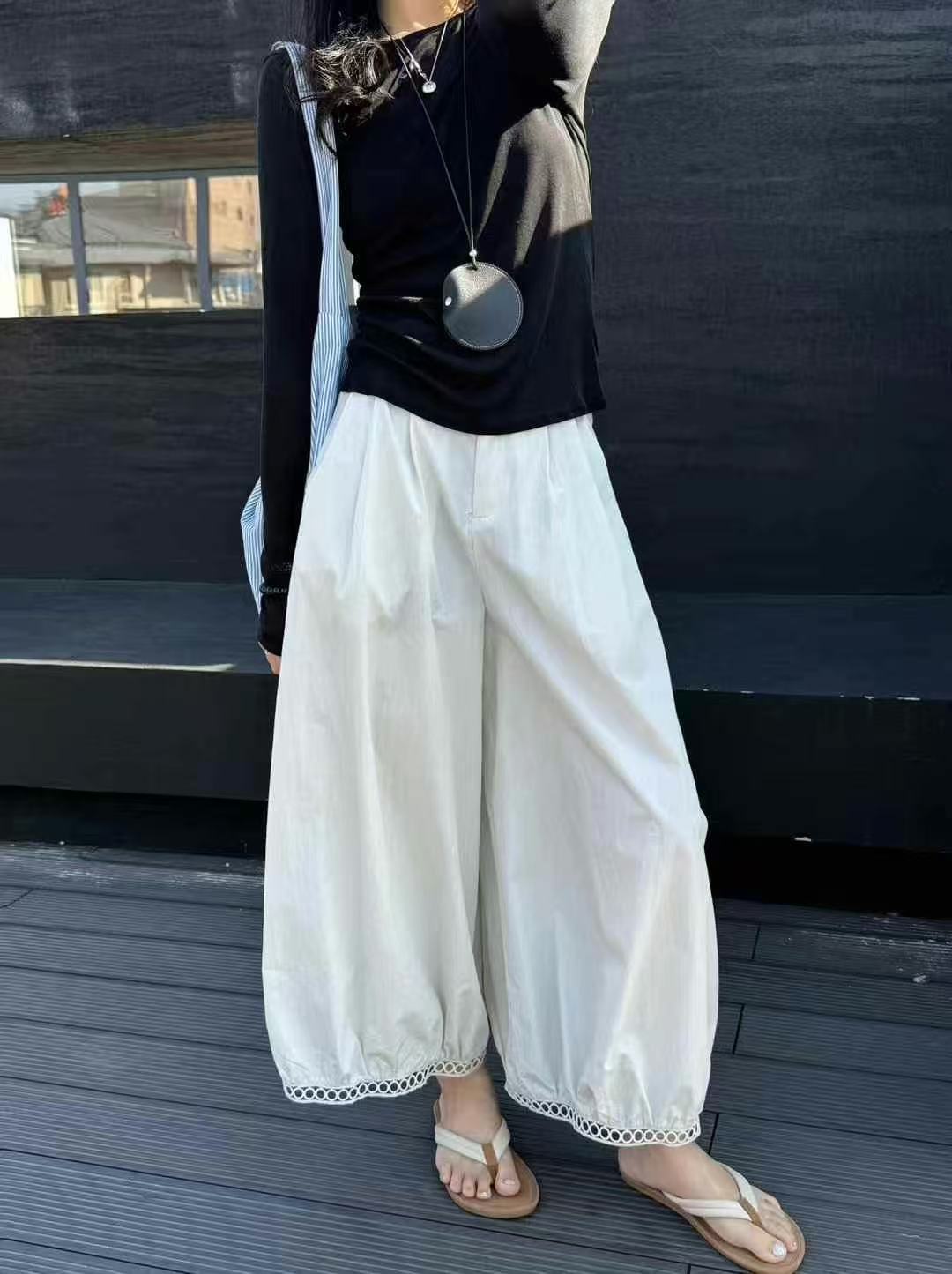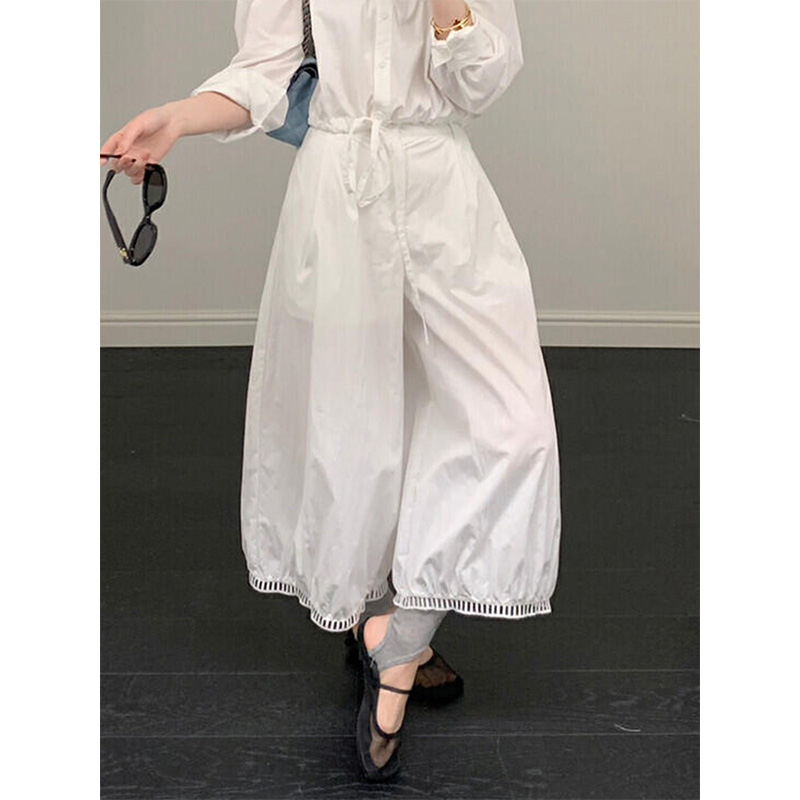 미니멀리즘 고급 센스 레이스 레이스 랜턴 와이드 레그 팬츠 2026 여성 새로운 자외선 차단 캐주얼 바지