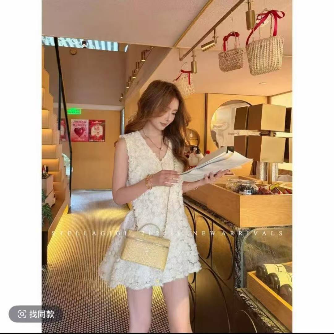 양 에 따르면 샨 ss 무거운 작업 3 차원 자수 꽃 V넥 민소매 드레스 색상