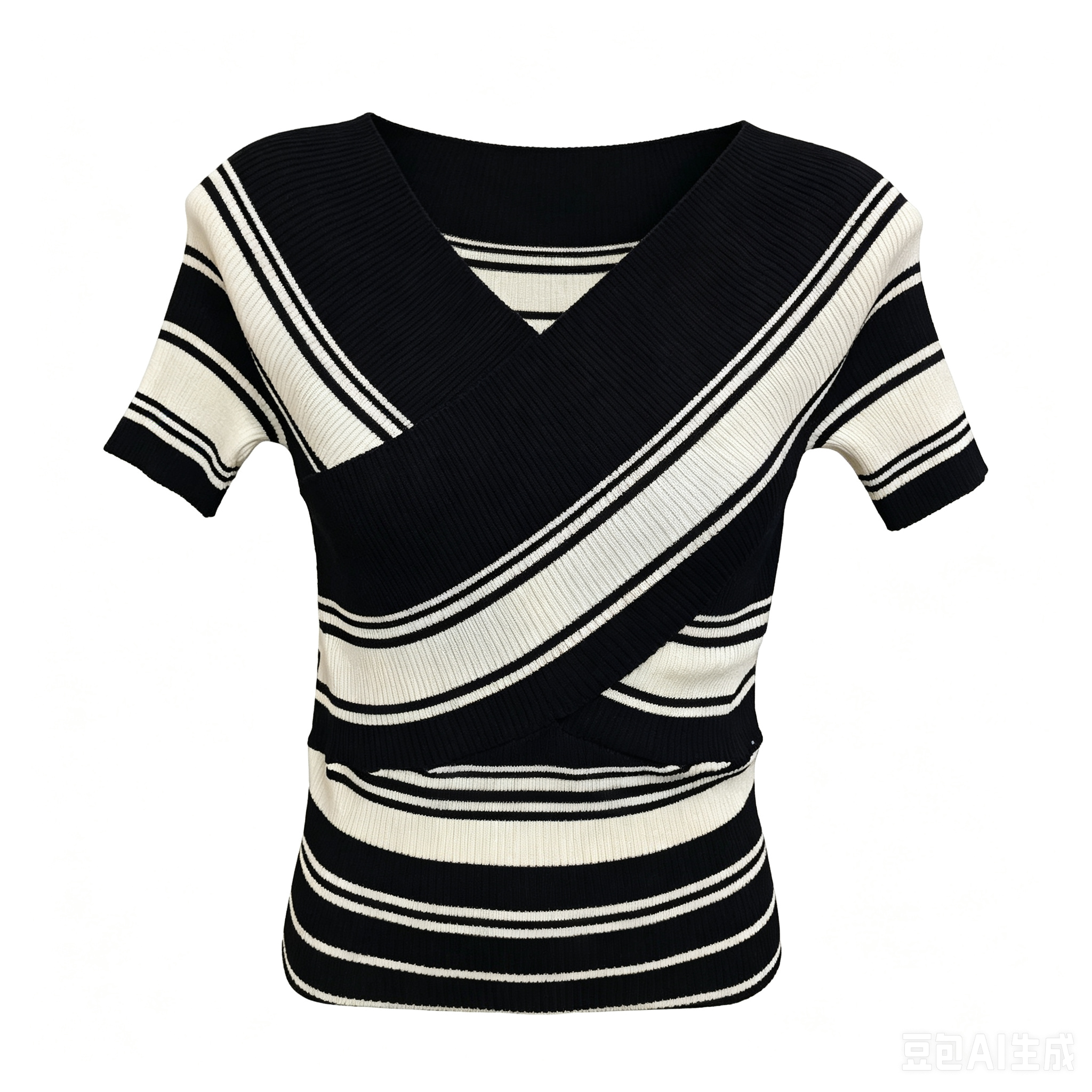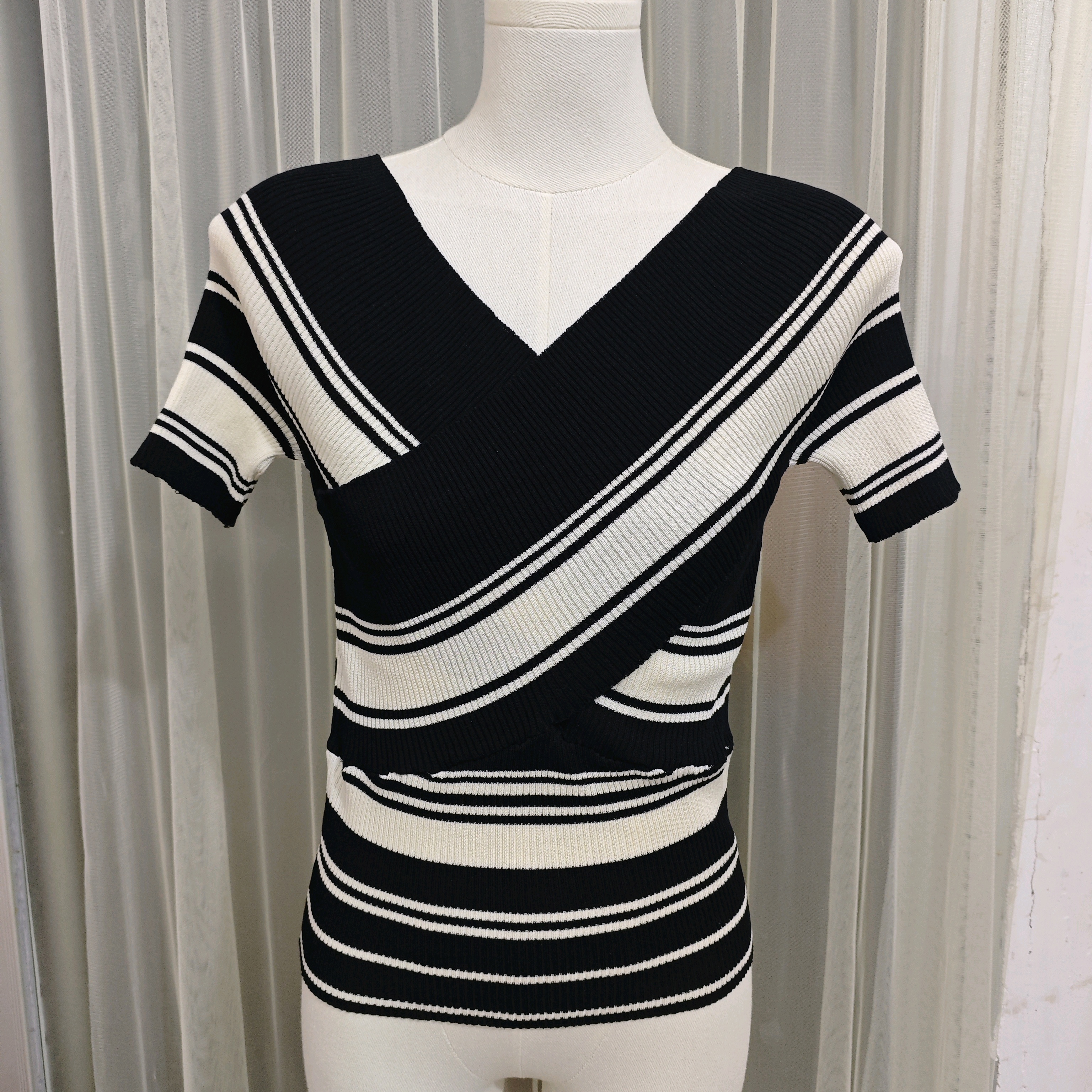 여름 한 부서 더블 색상 실 작은 V넥 니트 반팔 티셔츠
