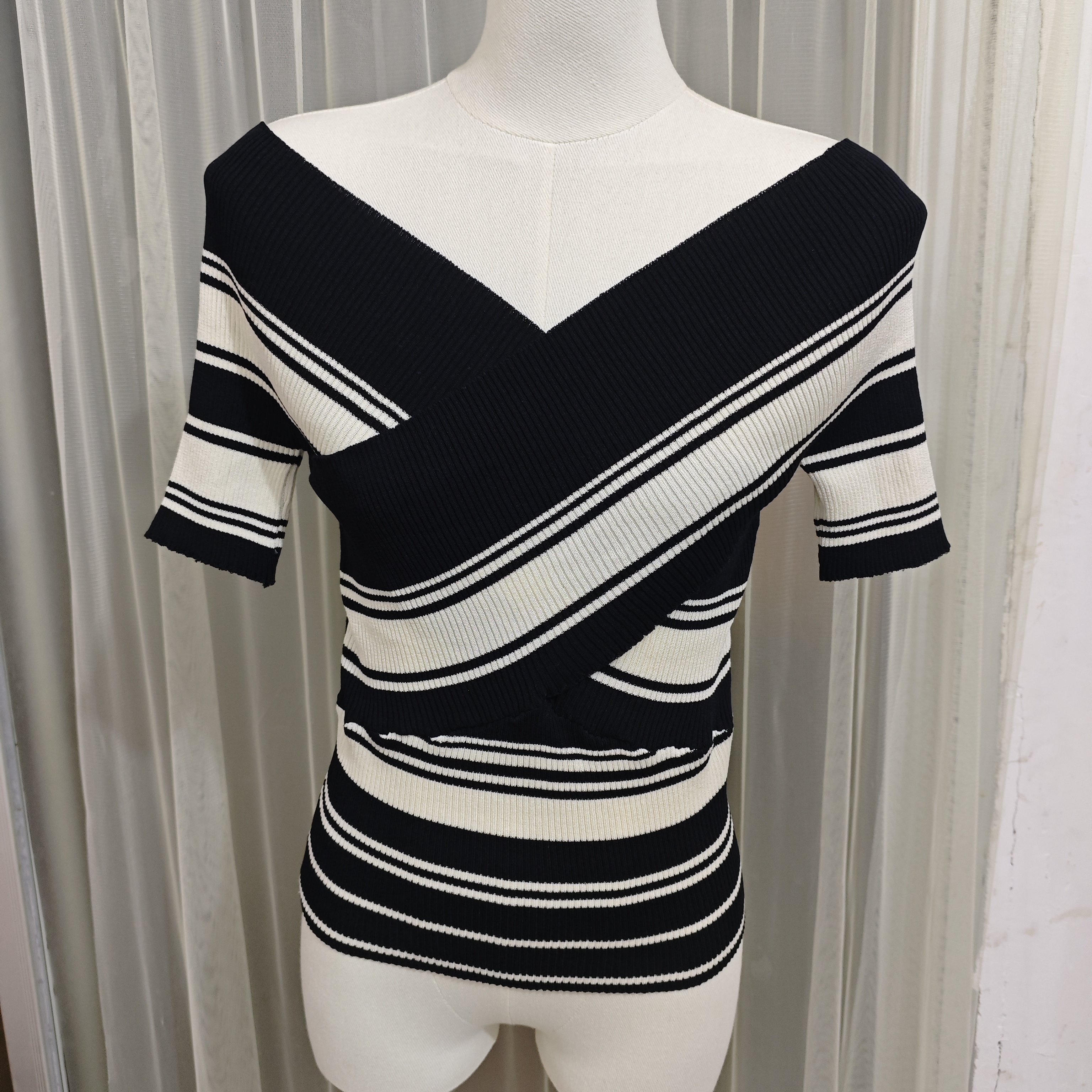 프랑스식 부드러운 바람 십자가 칼라 스트라이프 니트 스웨터 슬림해 보이는 쌰 셔츠