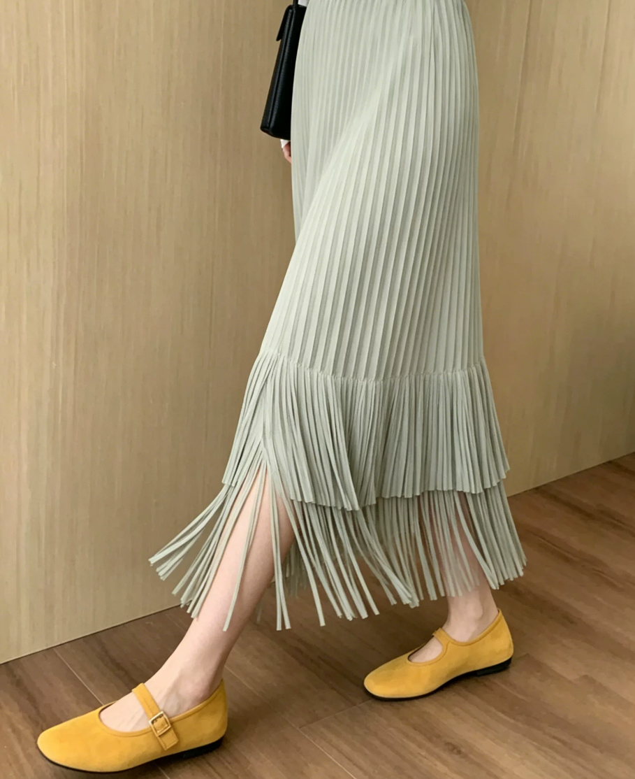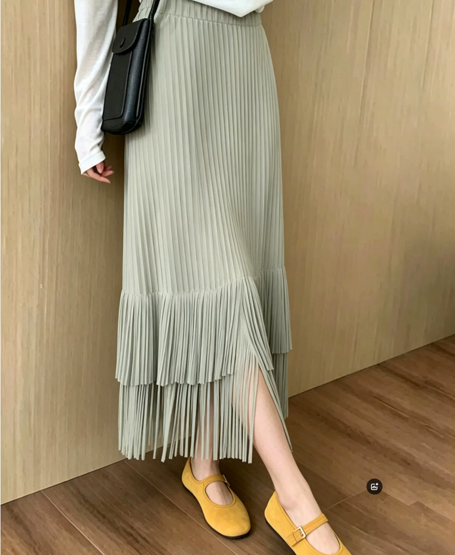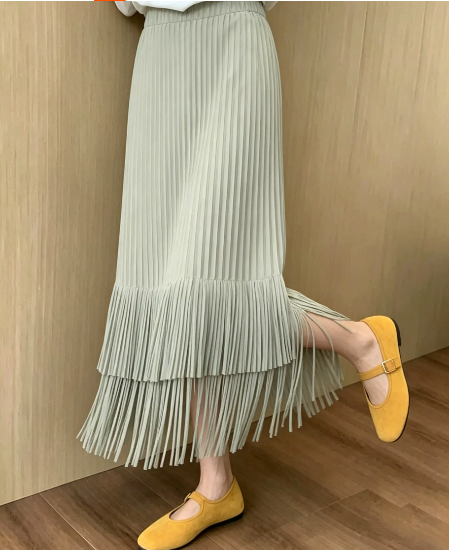 하이웨이스트 슬림해 보이는 술 반신 스커트 여성 여름 다용도 롱 스커트 불규칙 플리츠 치마 패션 외국 가스 치마