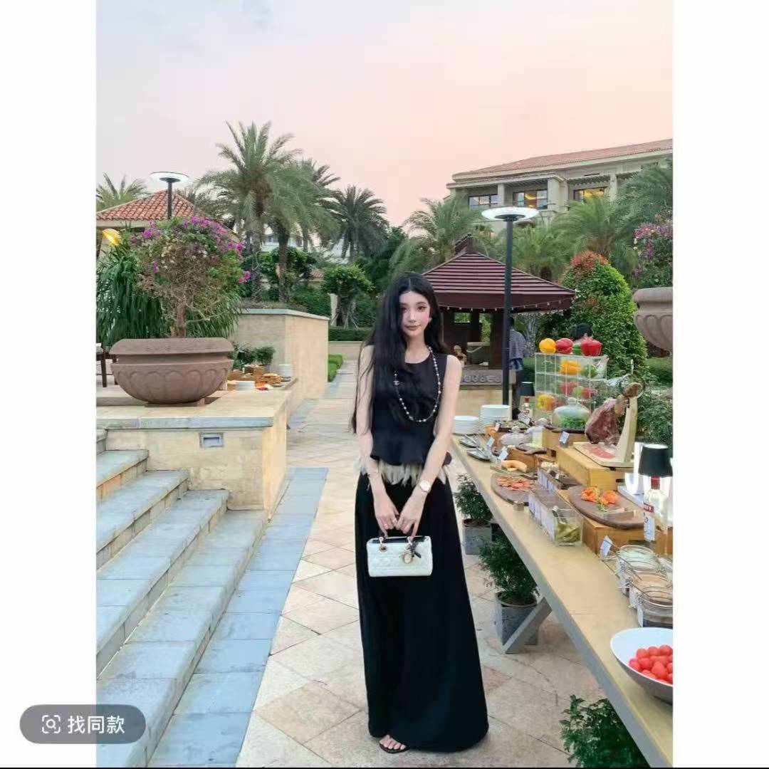 유럽 역 2026 여름 조류 소녀 철자 레이스 외국 가스 베스트 맨위 와이드 레그 팬츠 패션 캐주얼 세트