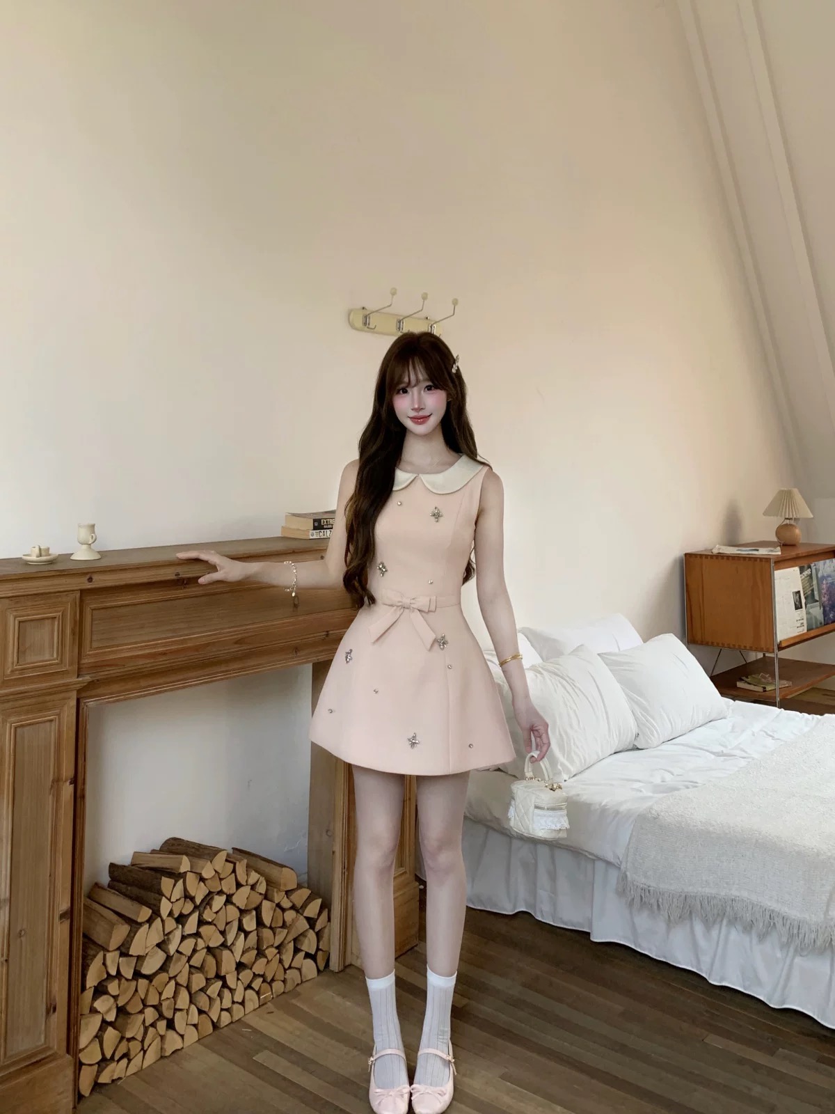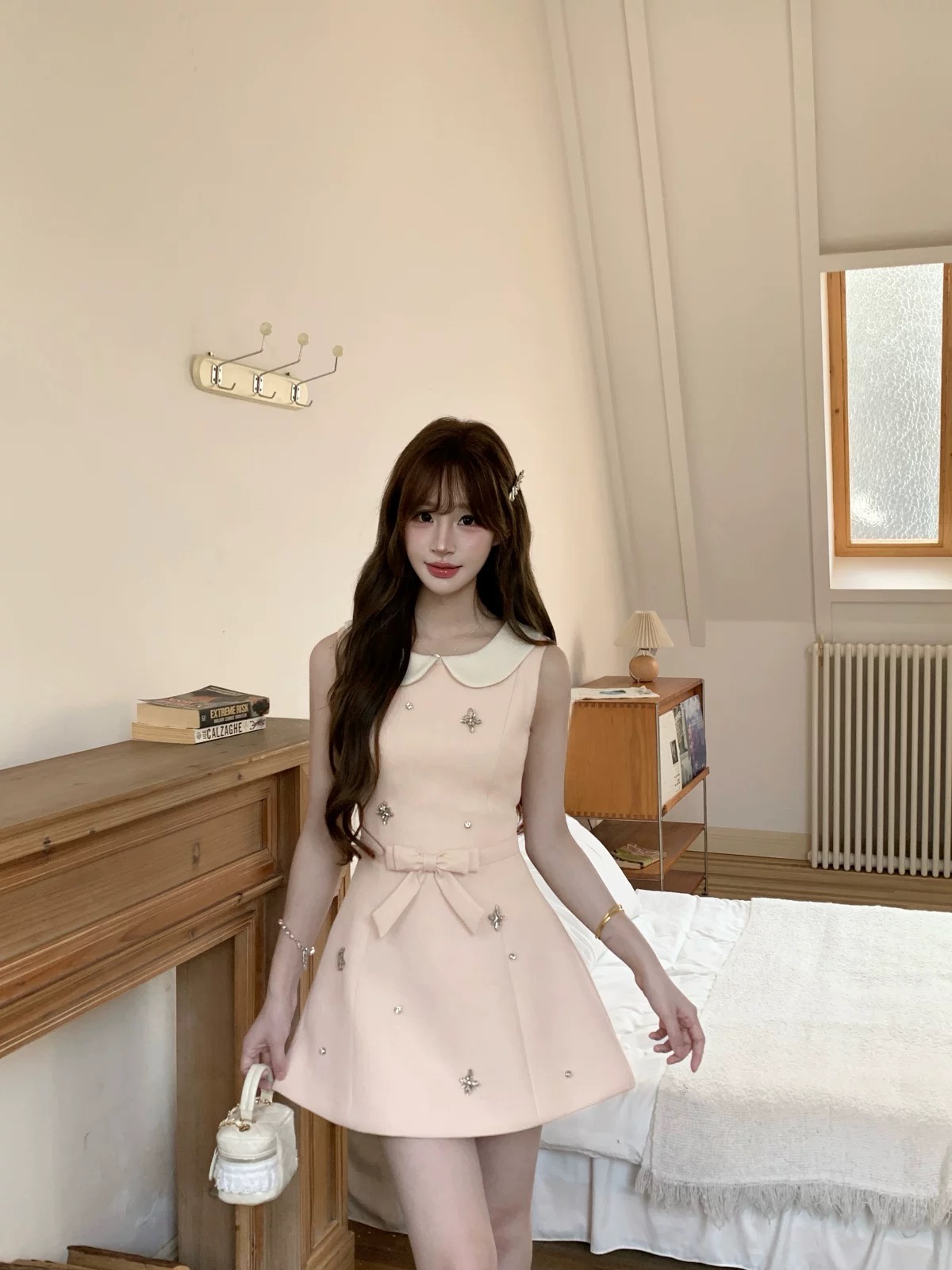 2026 프랑스식 고급 센스 품격 명문 여성 새로운 롱 스커트 슬림해 보이는 작은 키 요정 핑크색 점프 슈트 치마 여름