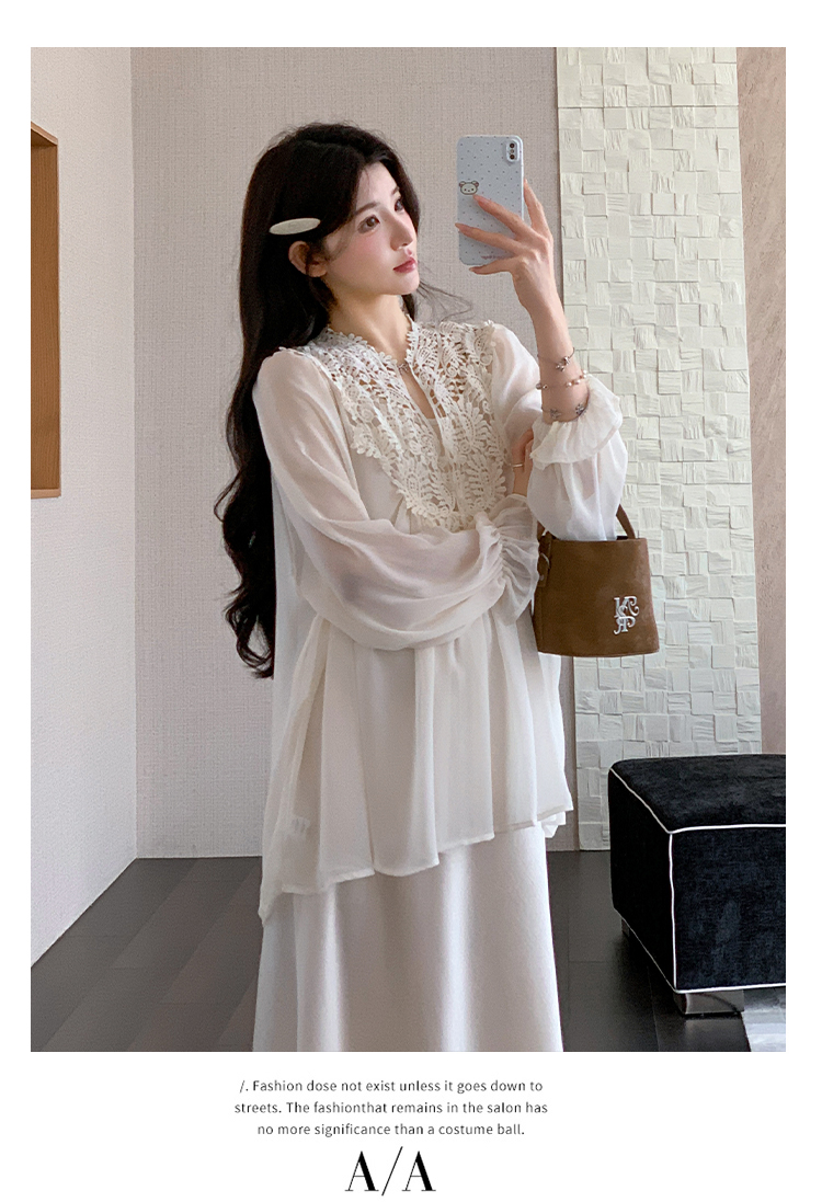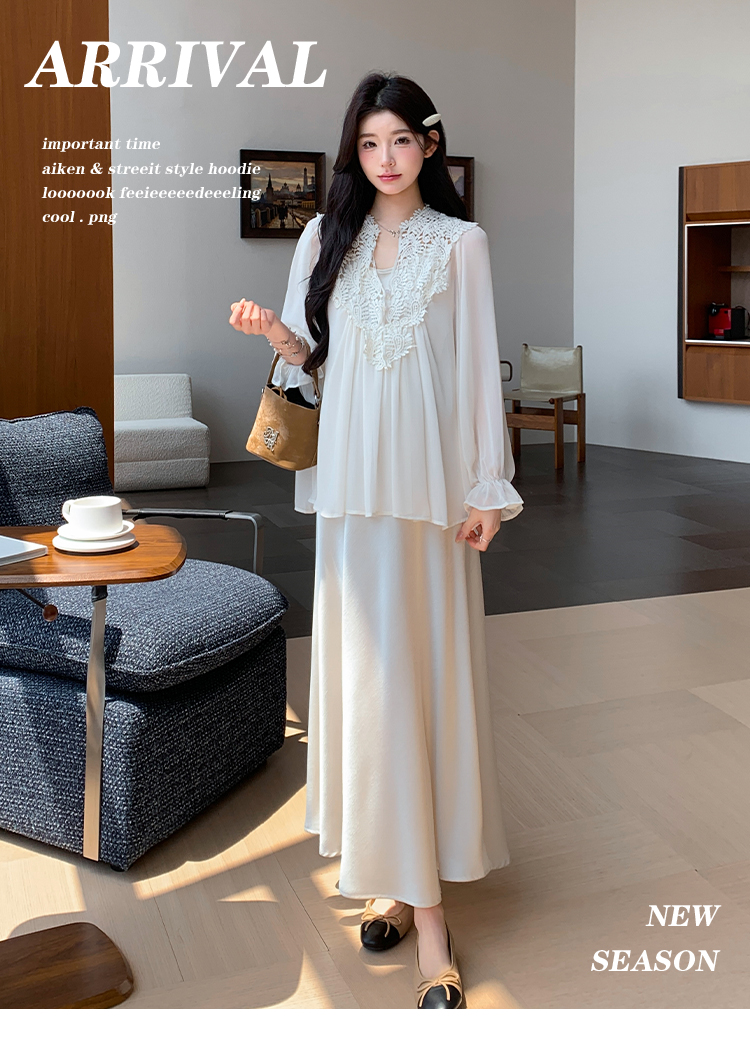 실사 선물 물품 새로운 한국 스타일 레이스 외국 가스 휴가 바람 슬립 드레스 자외선 차단 오픈 가디건 투피스 세트 임산부 세트
