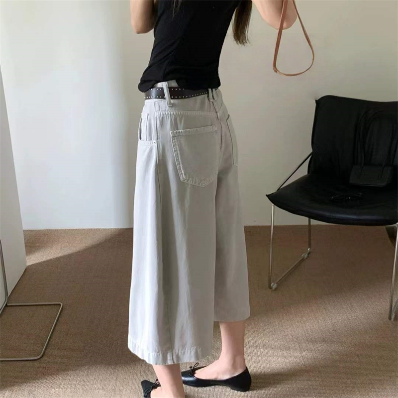 배색 거친 가장자리 허리밴드 청바지 느긋한 와이드 레깅스 바지 봄 여름 새로운 루즈핏 다용도 캐주얼 긴 바지