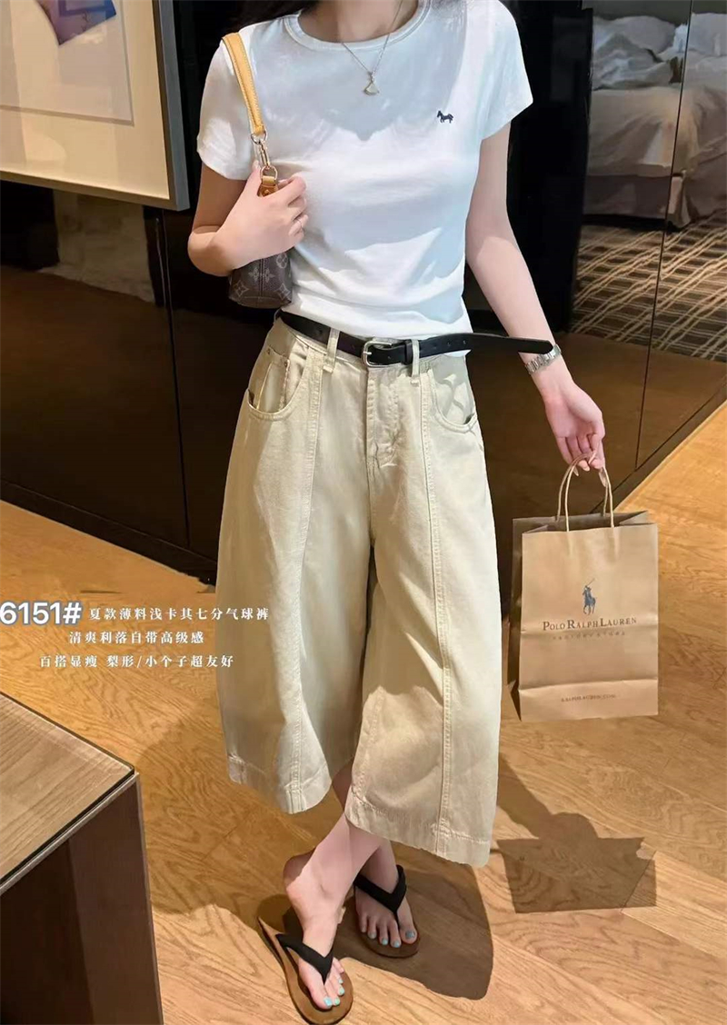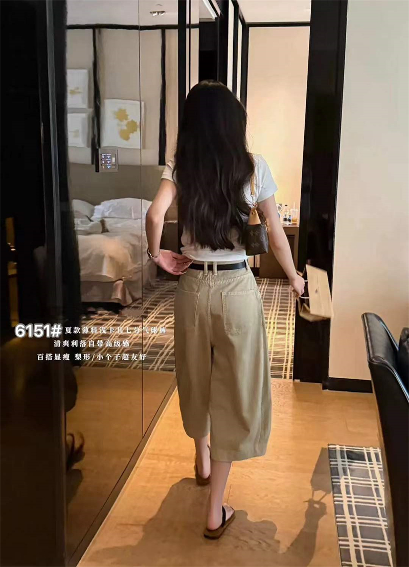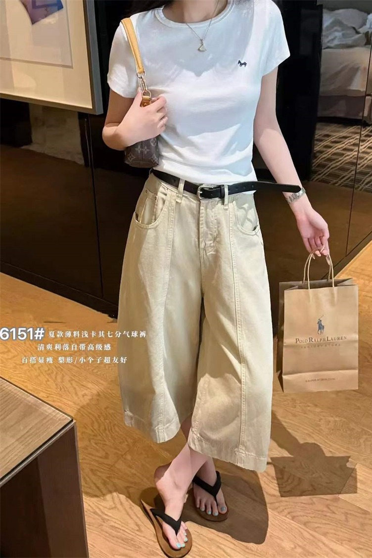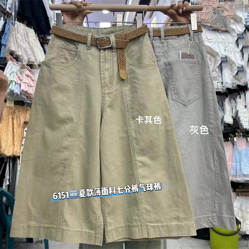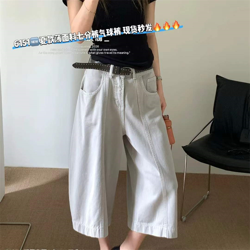 실사 2026 여름 새로운 품격 얇은 재료 바지 하이웨이스트 슬림해 보이는 스트레이트 루즈핏 7 점 풍선 바지 여성용 바지