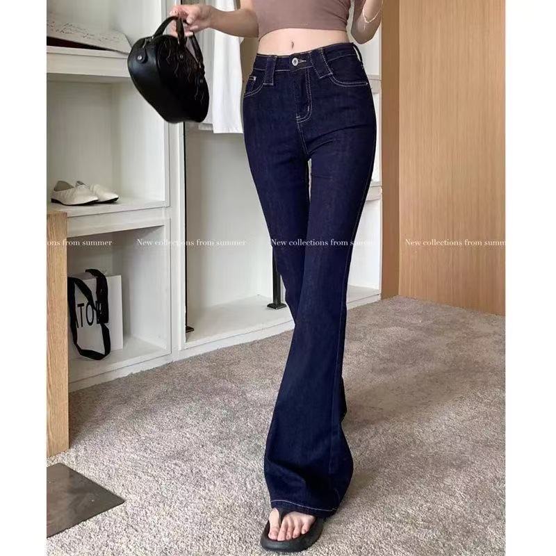 레트로 진한 파란색 슬림해 보이는 스트레이트 청바지 여성 한국 스타일 다용도 하이웨이스트 타이트 바닥 청소 나팔 바지