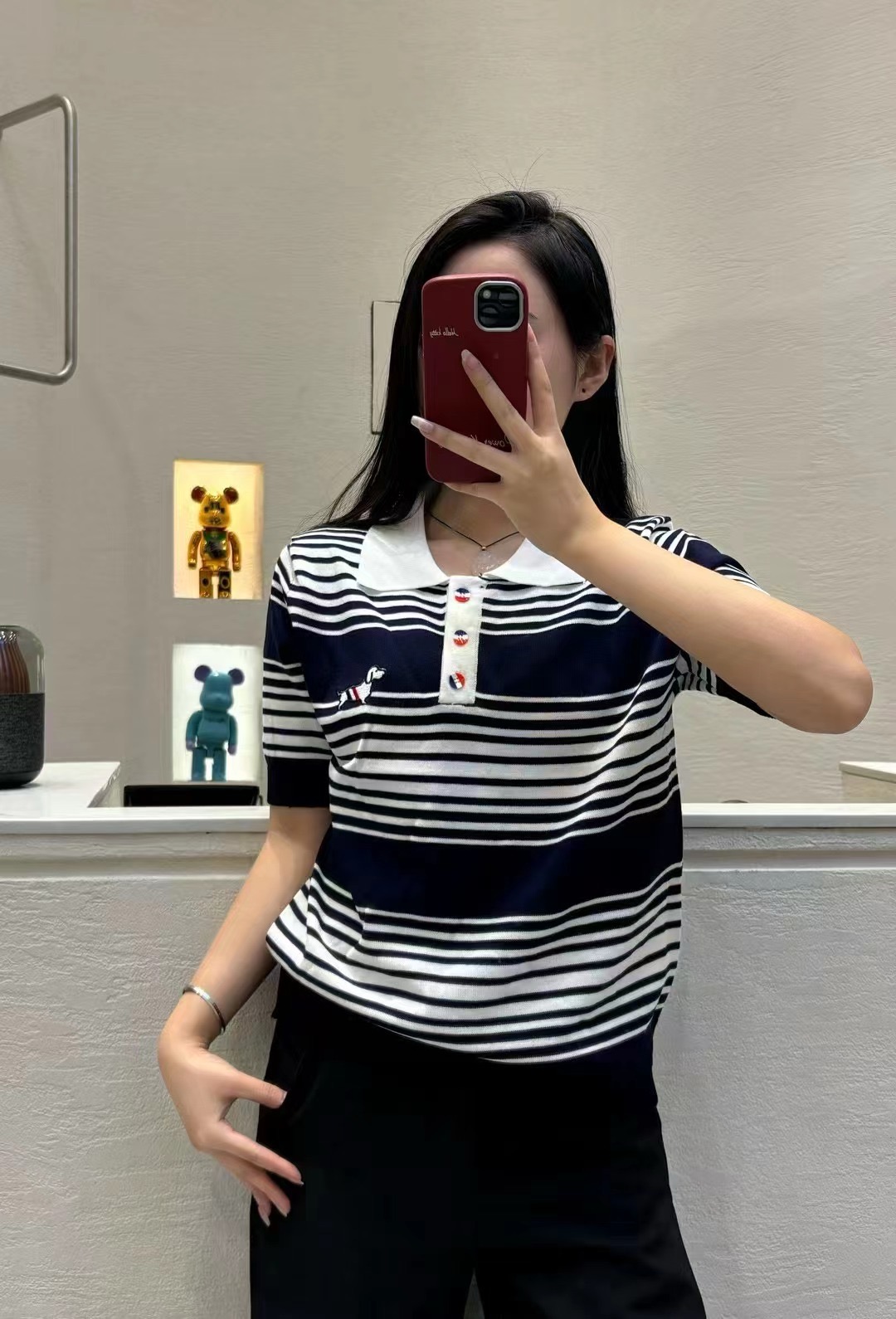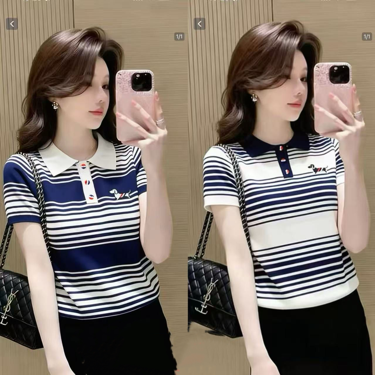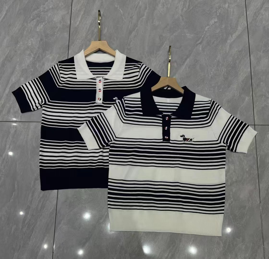 여름 새로운 스트라이프 강아지 자카드 니트 반팔 한국 스타일 학원 스타일 POLO 칼라 품격 맨위