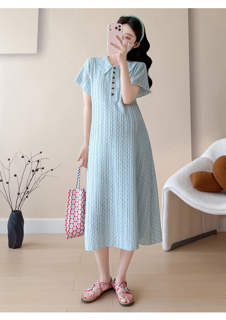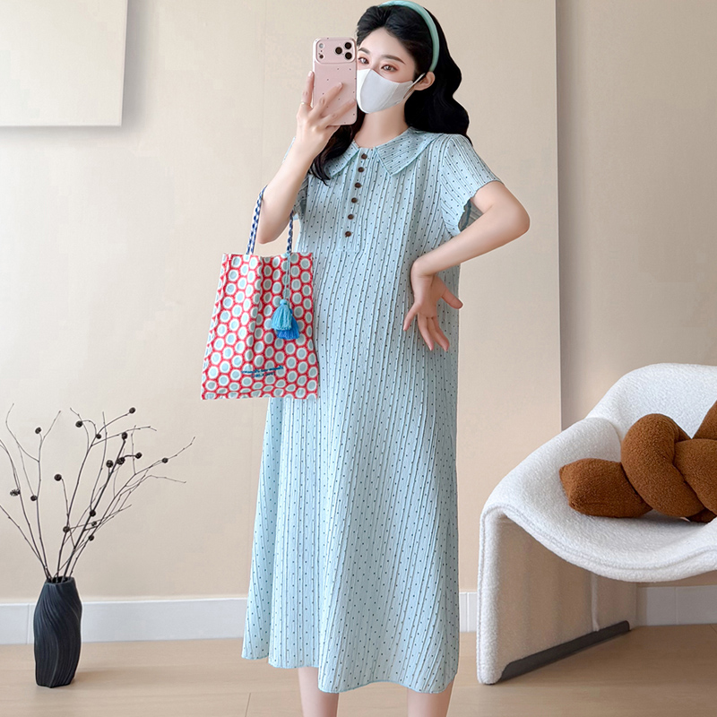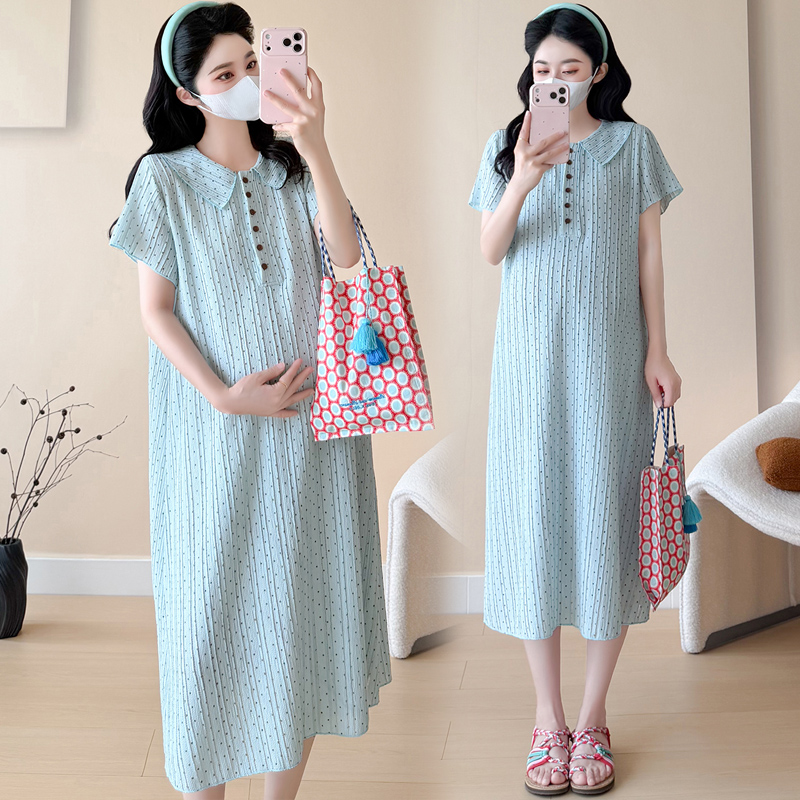 실사 임산부 여름 새로운 빅 사이즈 작은 청신 드레스