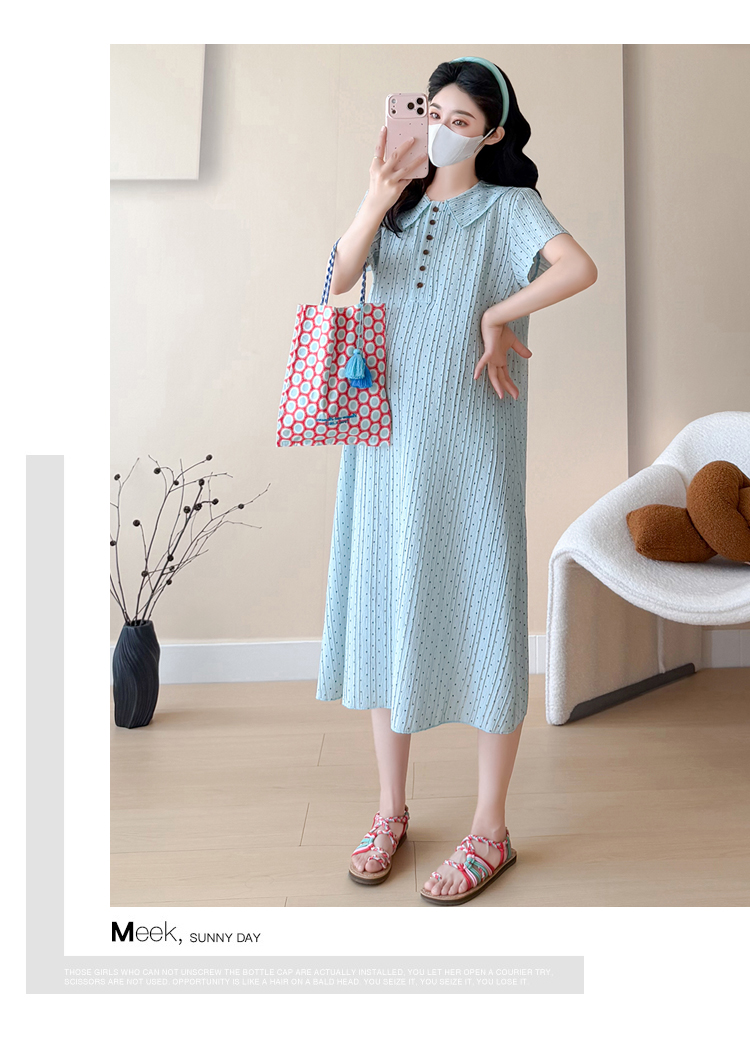 실사 여름 POLO 칼라 루즈핏 캐주얼 디스플레이 화이트 편안함 임신 엄마 니트 도트 무늬 드레스