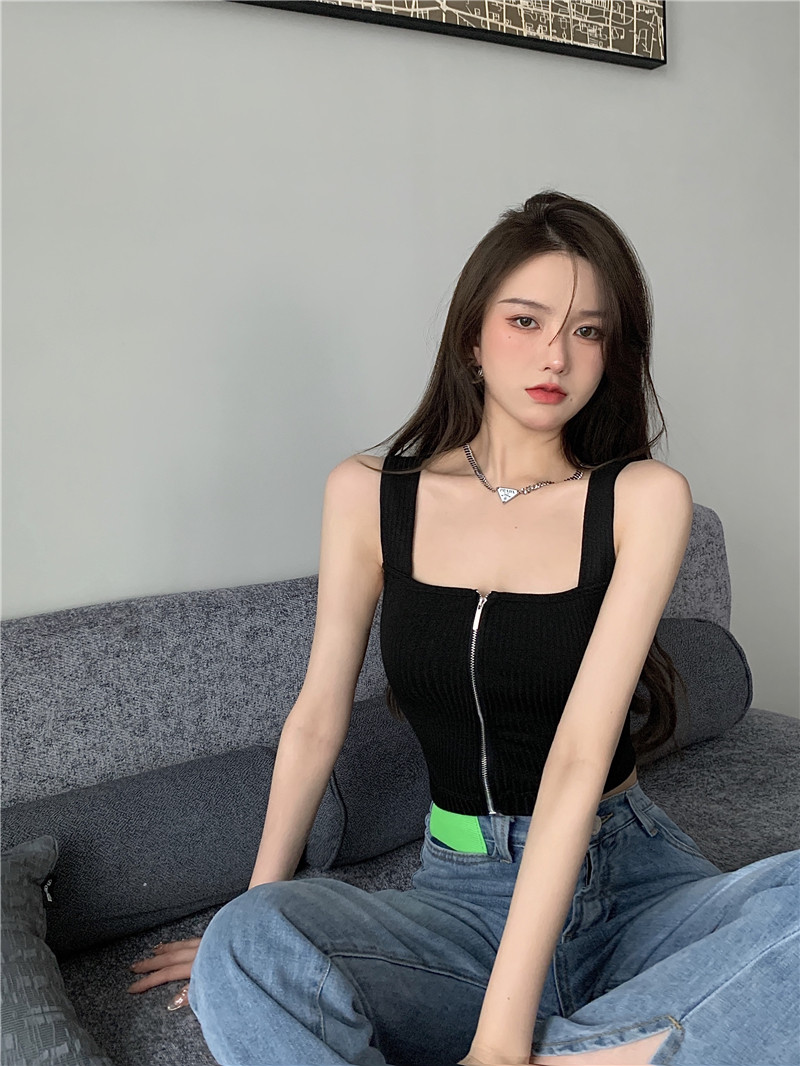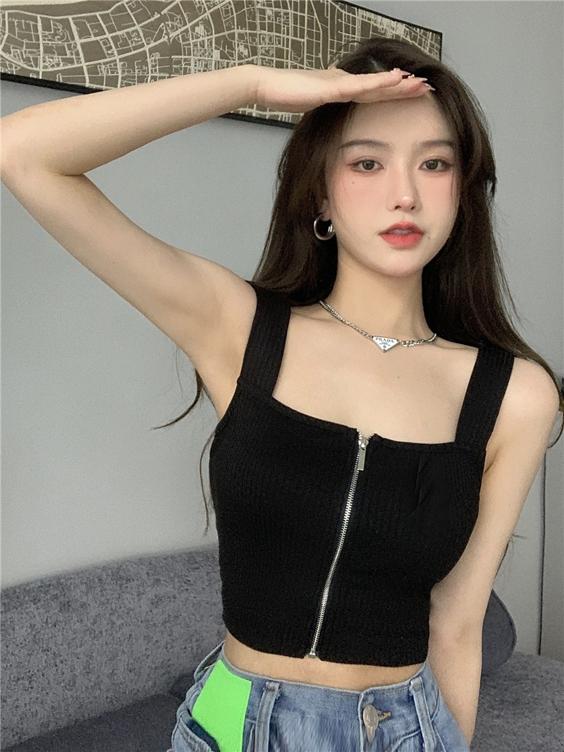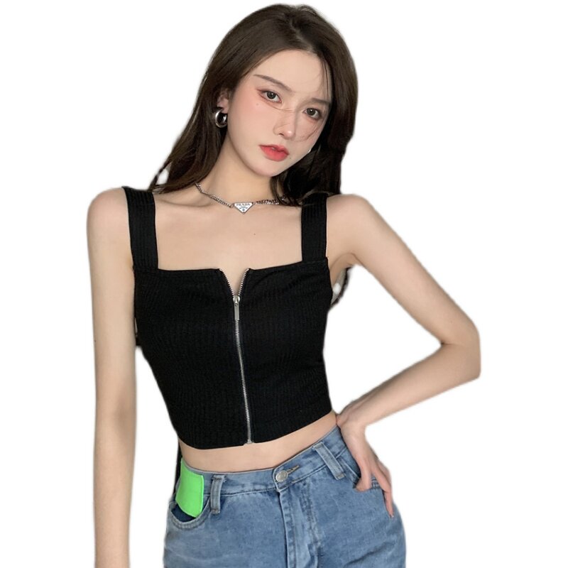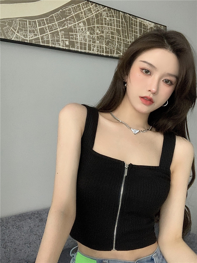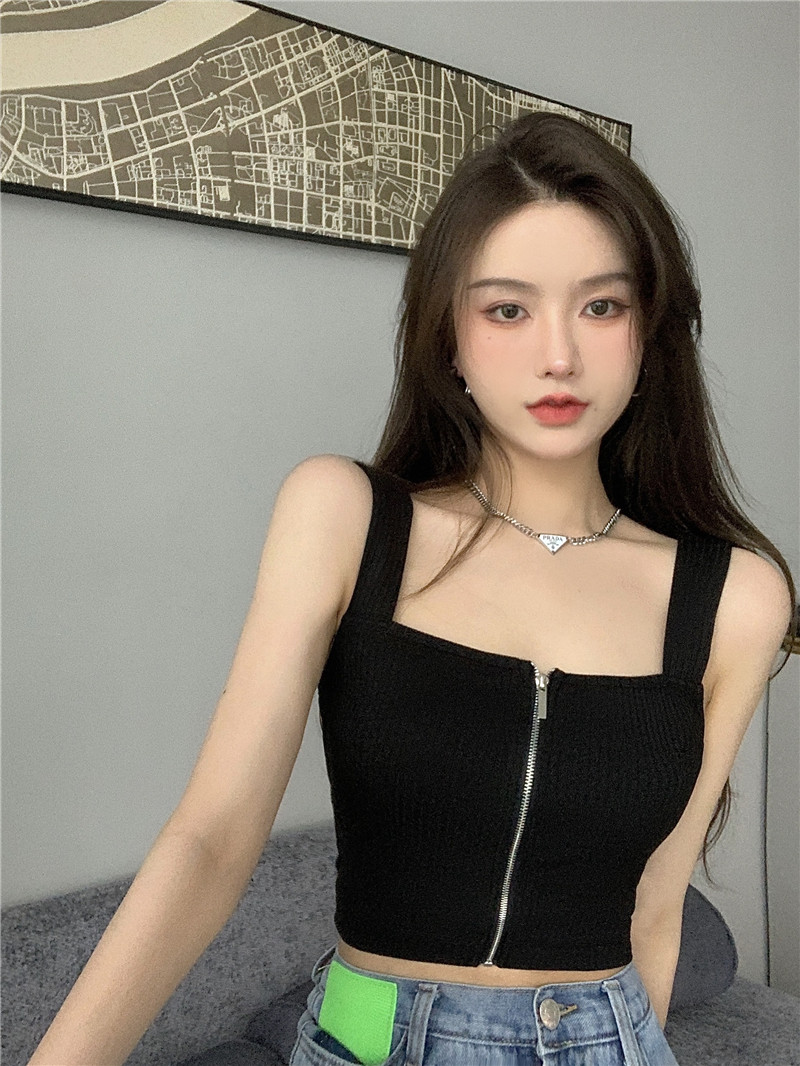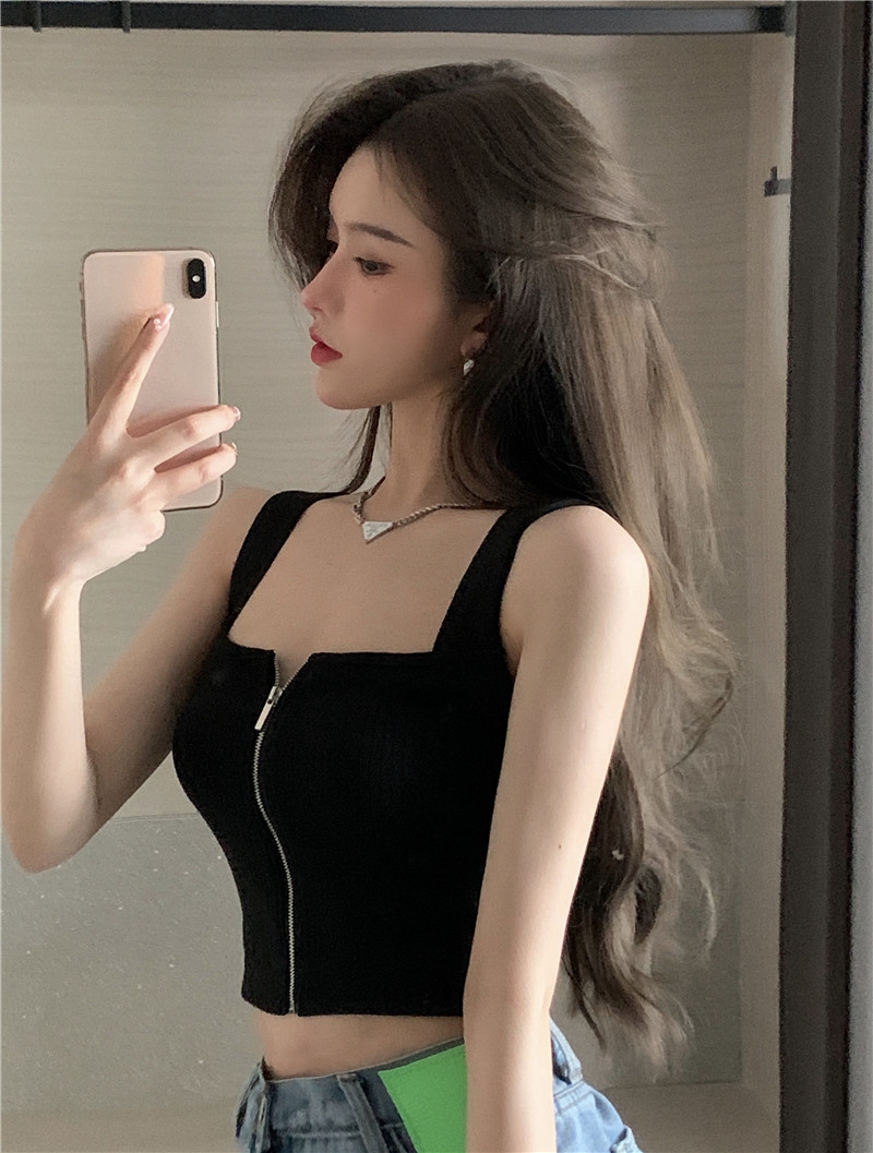 핫걸 순수한 욕망 디자인 센스 홀로우 아웃 금속 버클 경 사진 튜브탑 조끼 섹시함 품격 몸매 가꾸기 쇼트 스타일 만나는 맨위