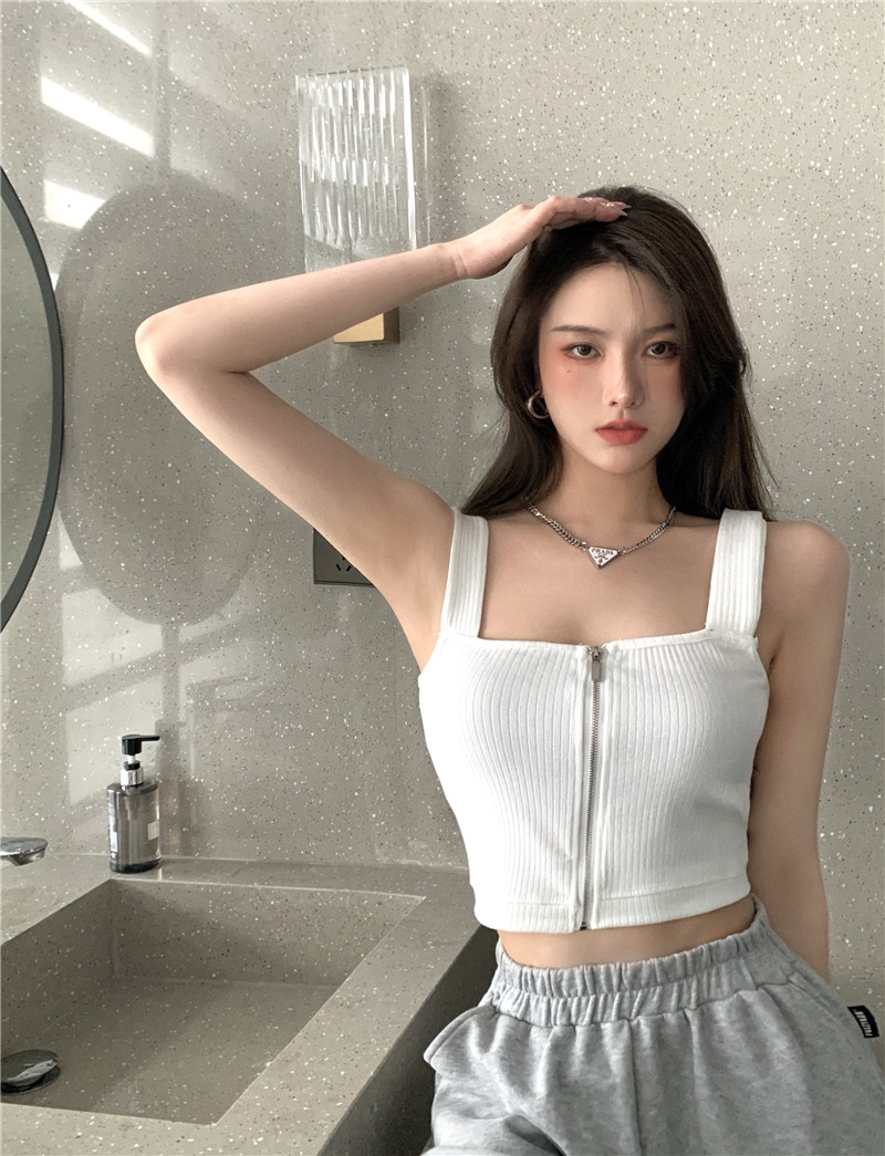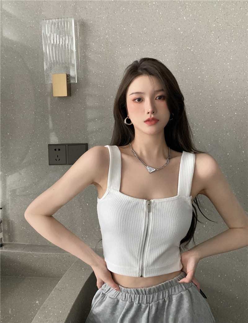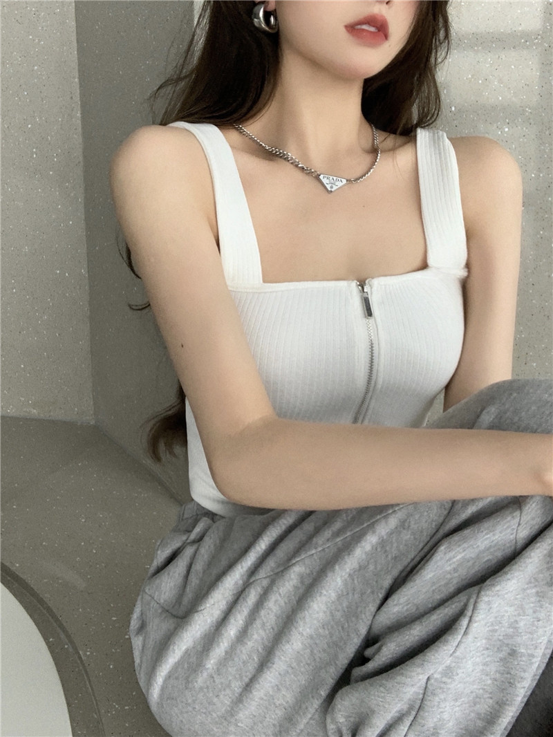 화이트 캐미솔 봄 여름 인사이드 가져 가라. 지퍼 쇼트 스타일 프랑스식 튜브탑 디자인 센스 작은 대중 외출용 Chic 맨위