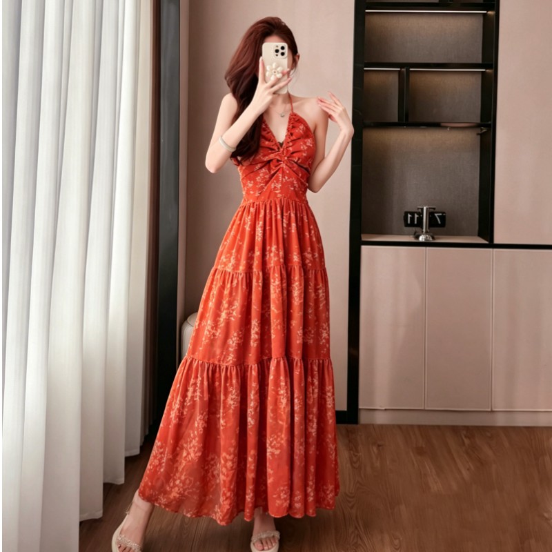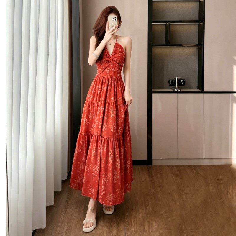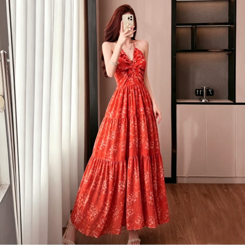 차 휴식 프랑스식 드레스 2026 새로운 여성 여름 부드러운 바람 프릴 요정 품격 쉬폰 슬립 롱 스커트