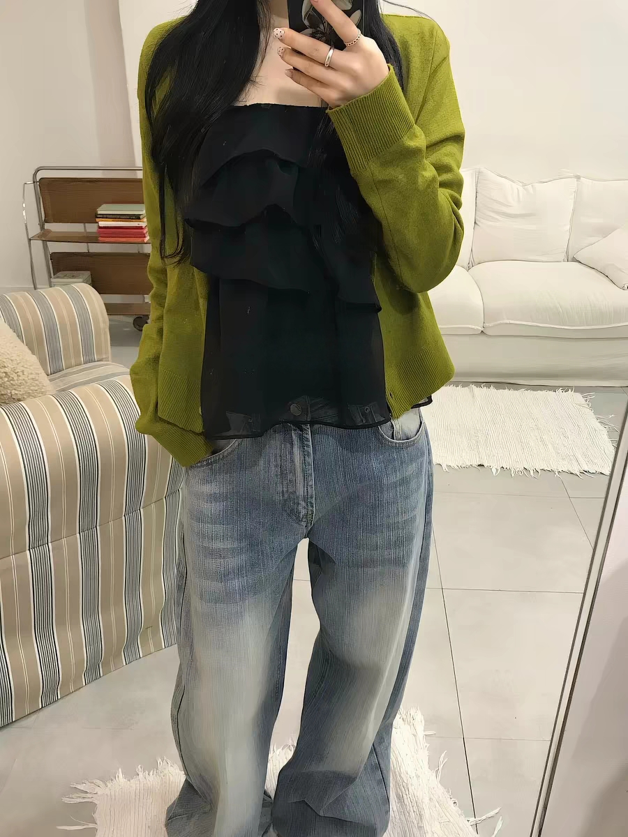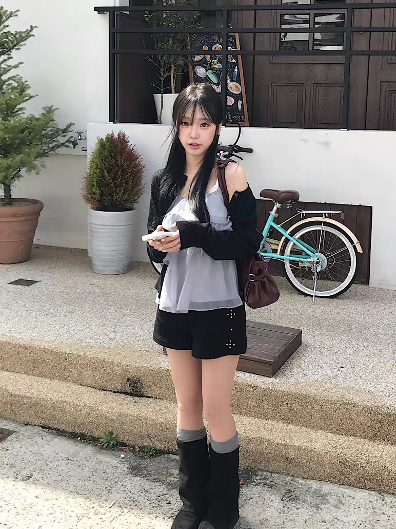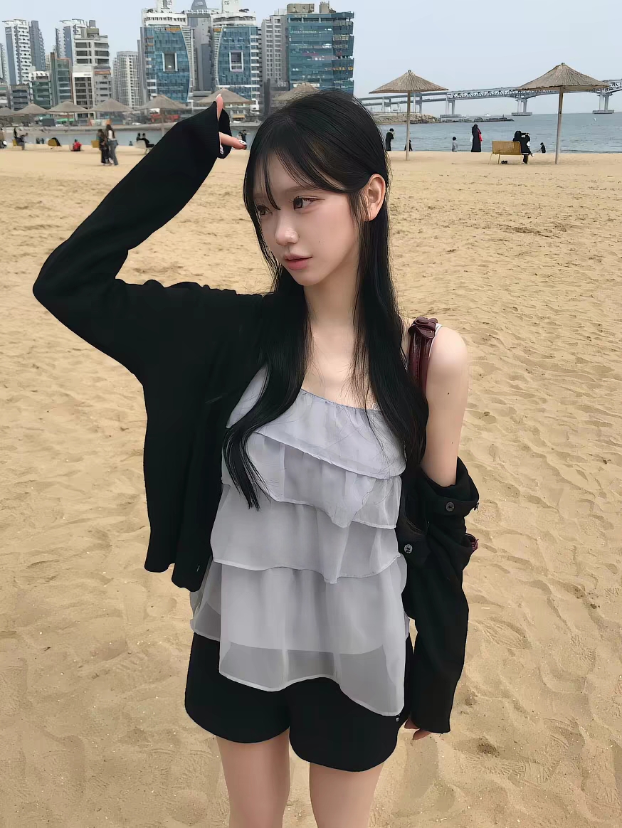 있음 선적 한국 ins 작은 대중 계단식 주름 레이스 쉬폰 달콤함 캐미솔