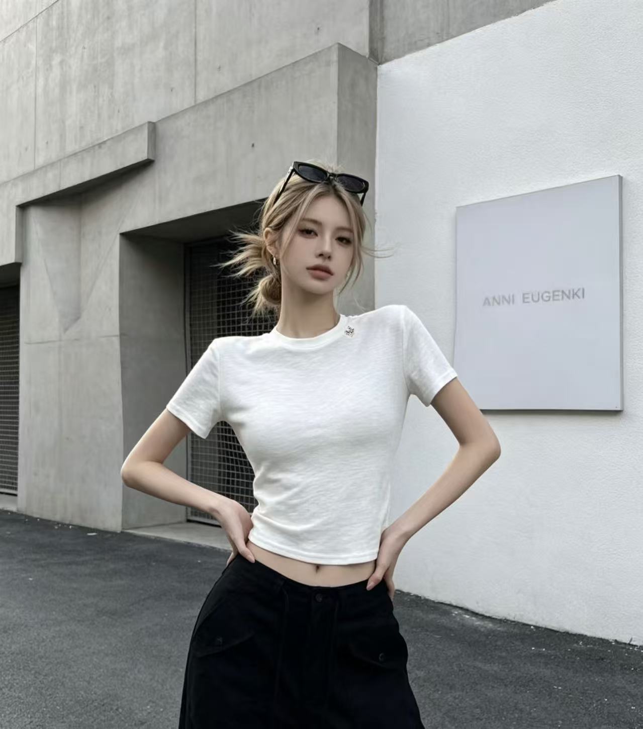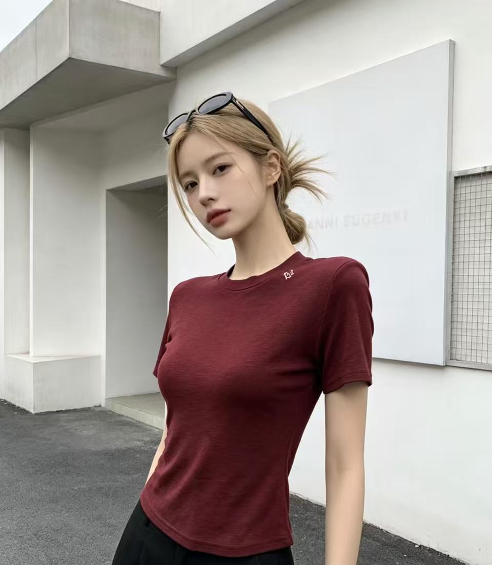 화이트 긍정적 인 어깨 반팔 티셔츠 여성 2026 봄 여름 새로운 착용 가져 가라. 단색 잘 생긴 작은 키 인사이드 가져 가라. 만나는 맨위