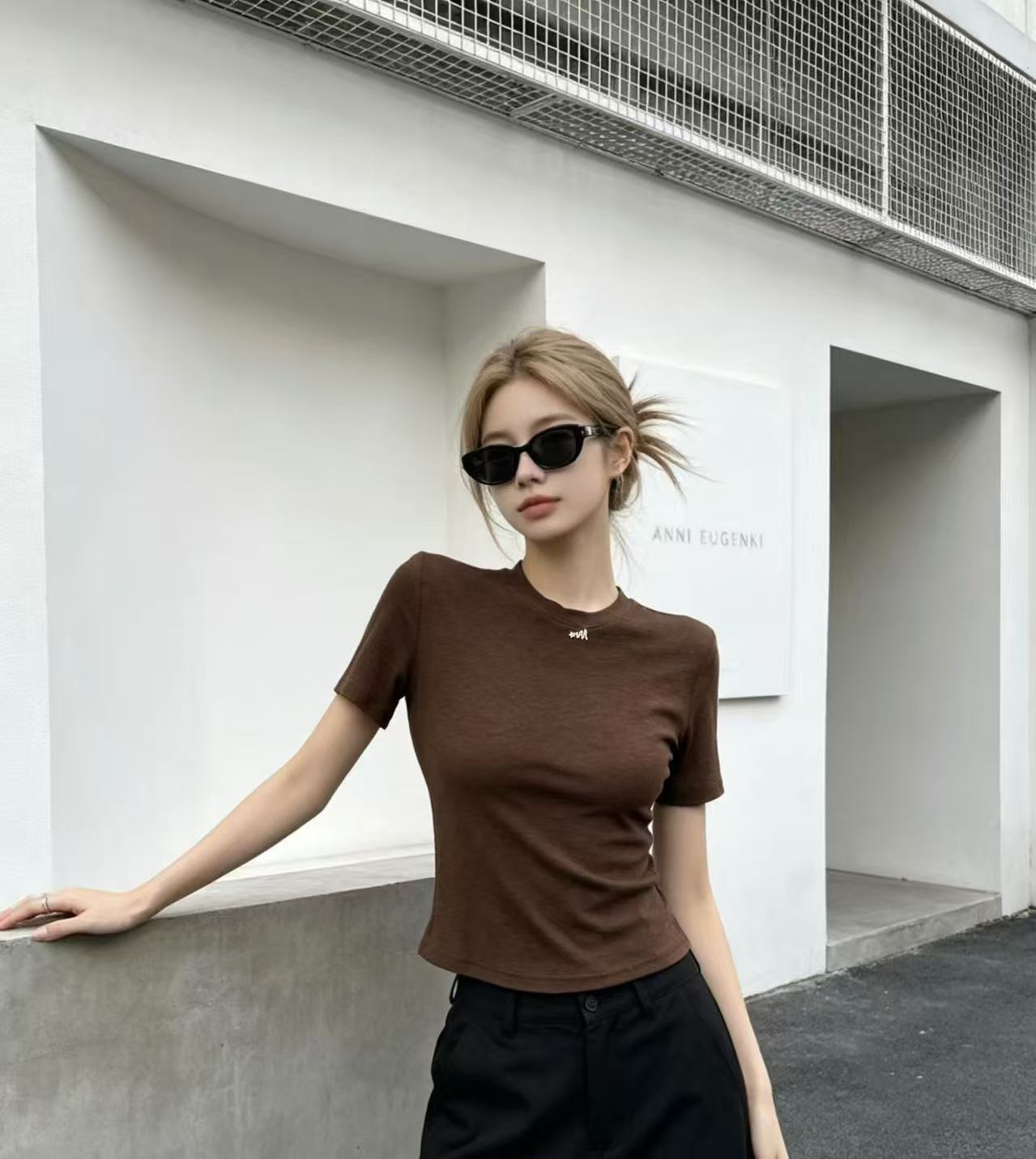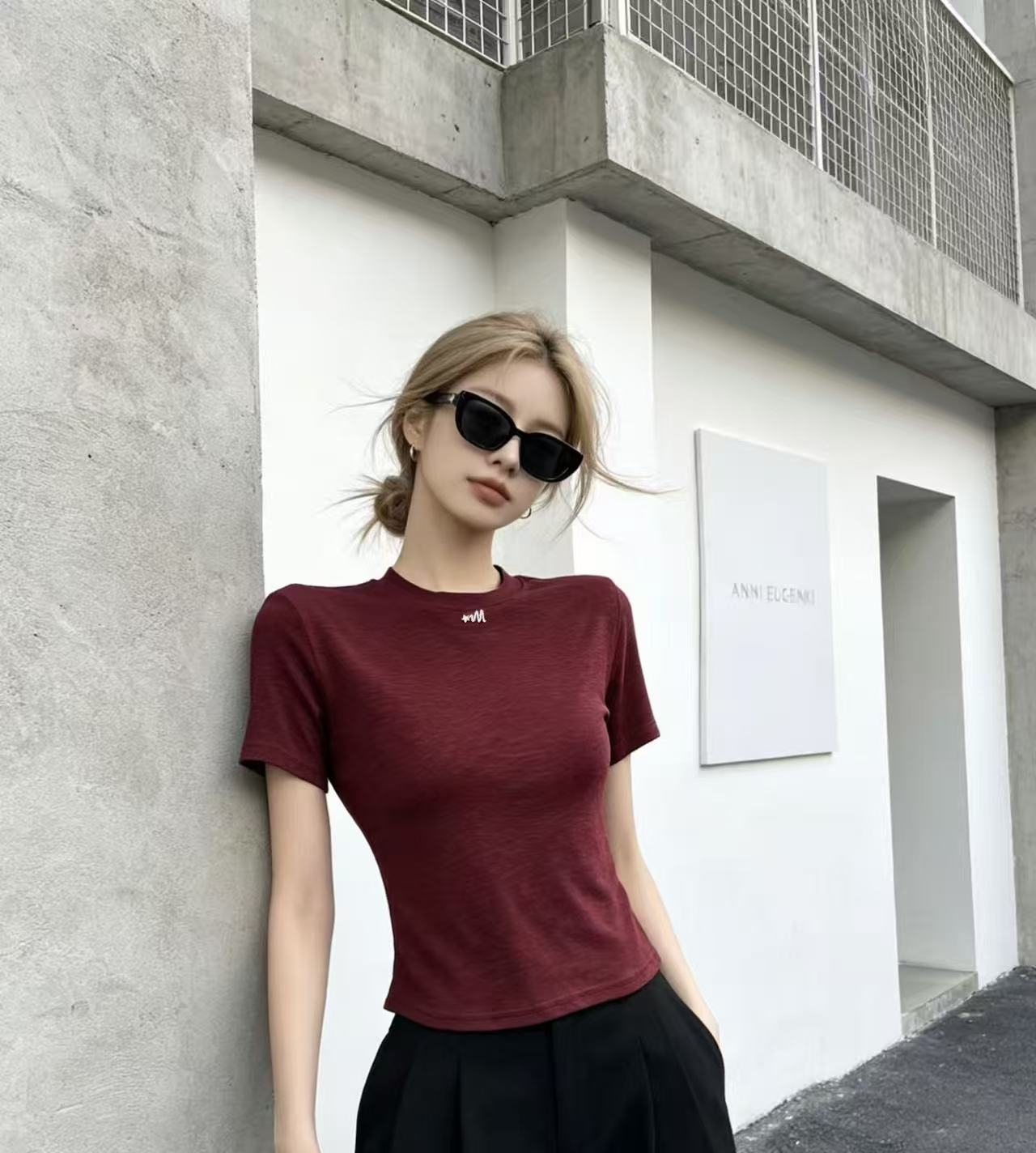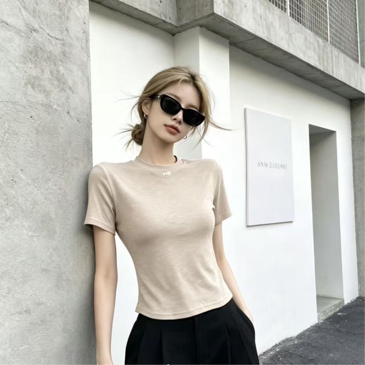 화이트 긍정적 인 어깨 반팔 티셔츠 여성 2026 봄 여름 새로운 착용 가져 가라. 단색 잘 생긴 작은 키 인사이드 가져 가라. 만나는 맨위