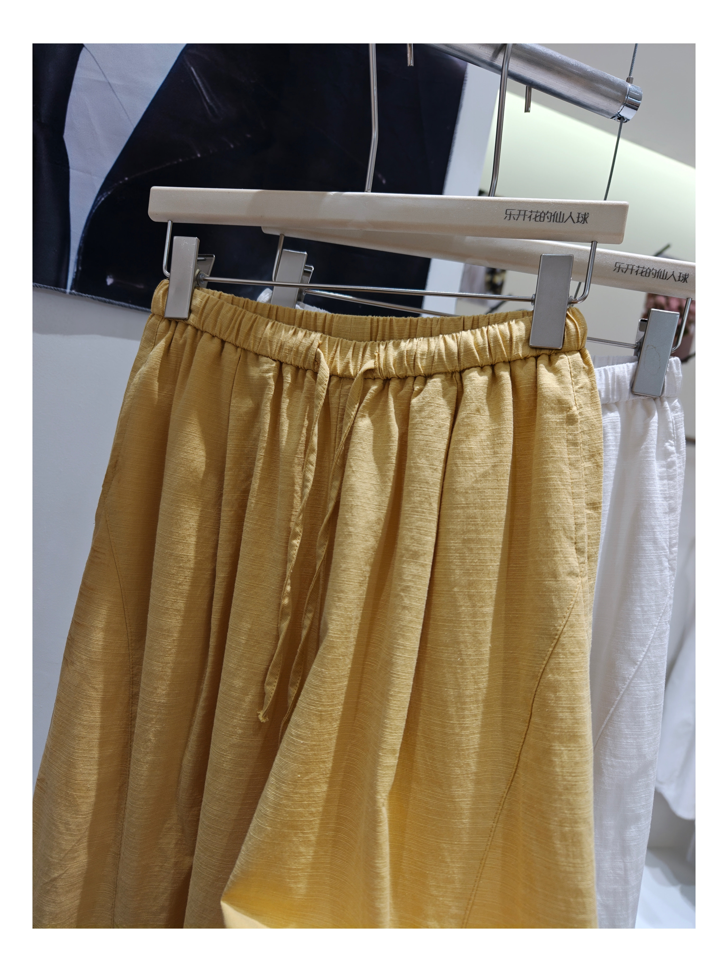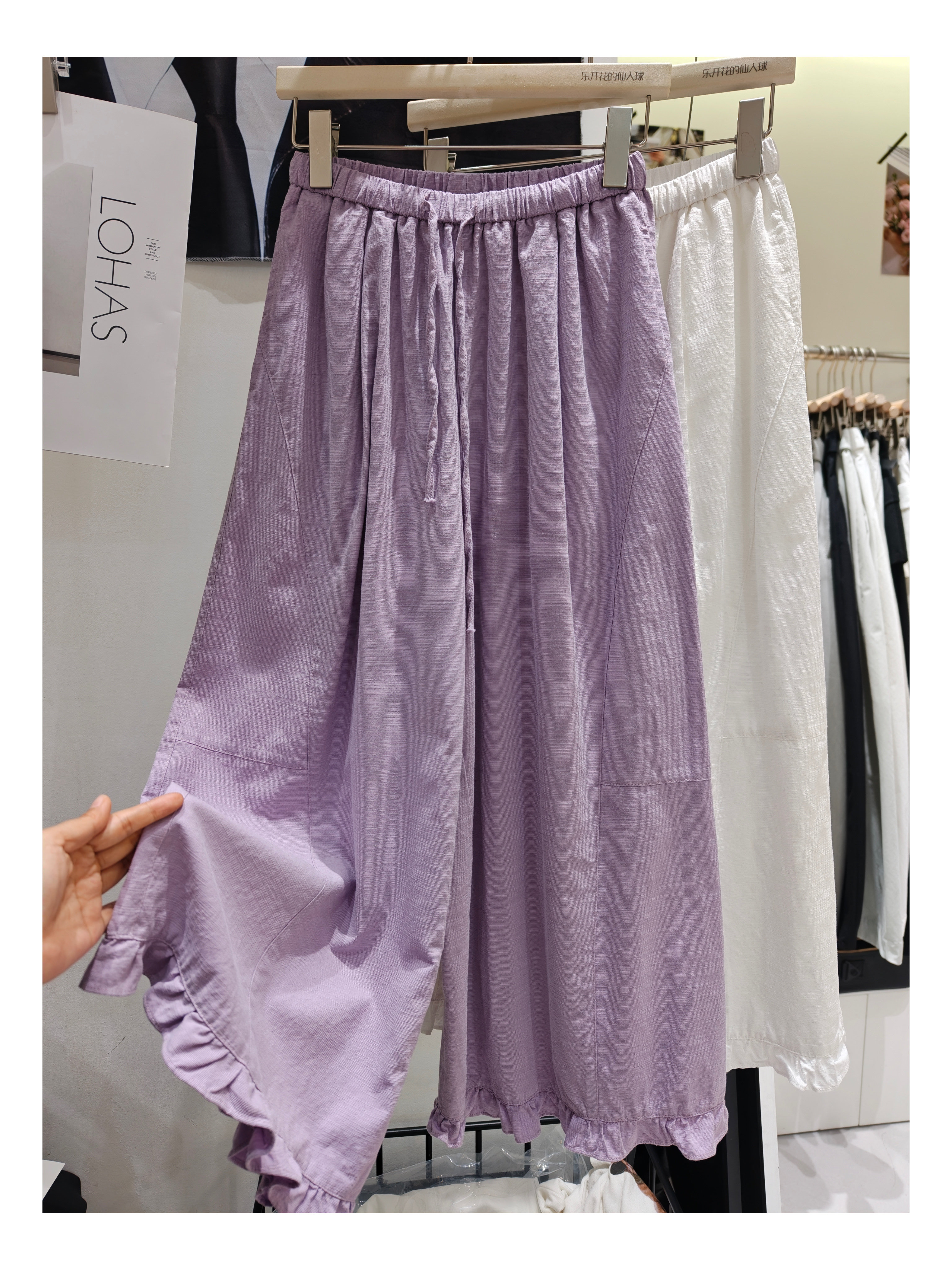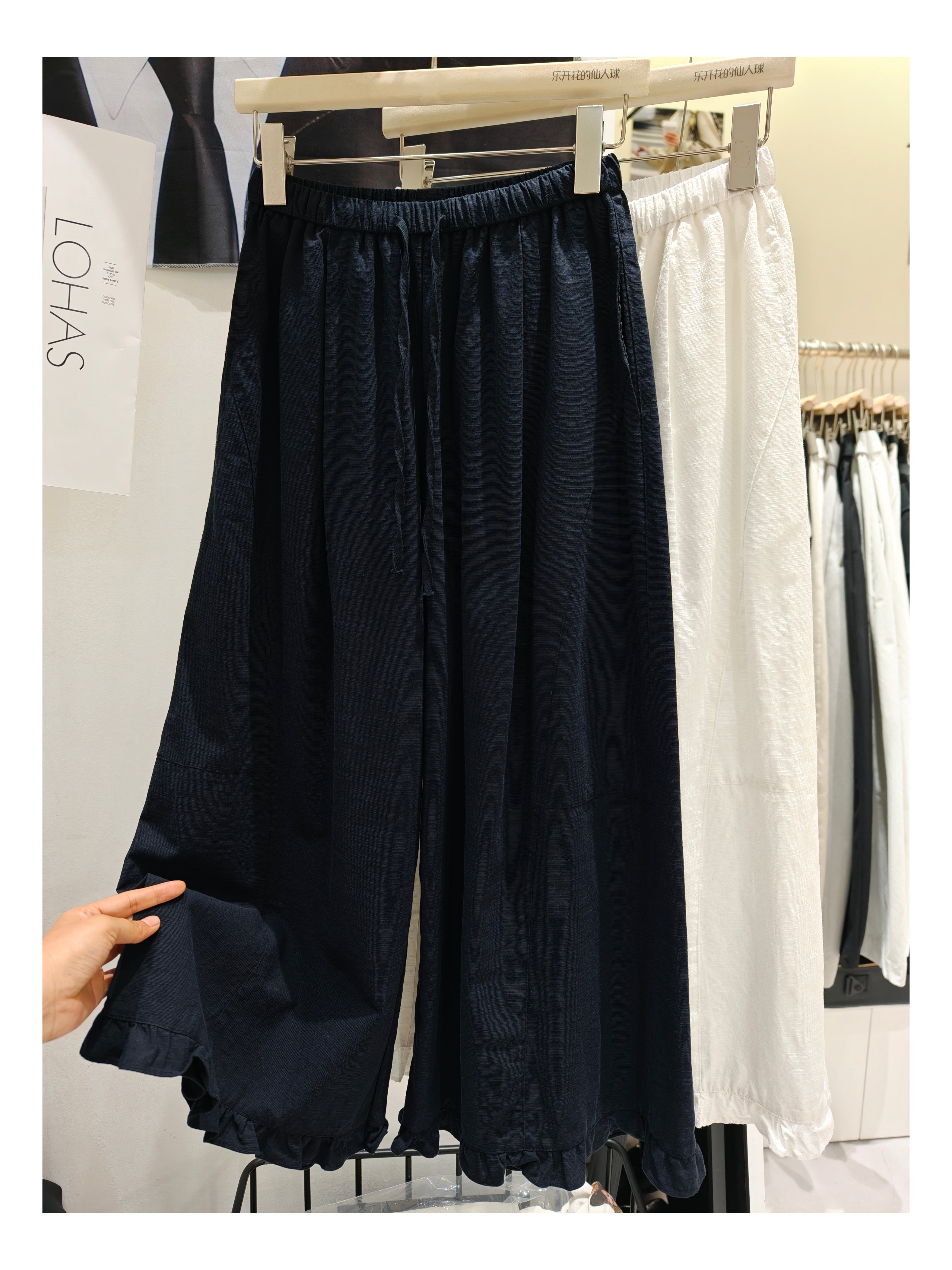 한 부서 목이버섯 레이스 면 린넨 재료 와이드 레깅스 바지 2026 여름 허리밴드 슬림해 보이는 루즈핏 스트레이트 캐주얼 바지 트렌디