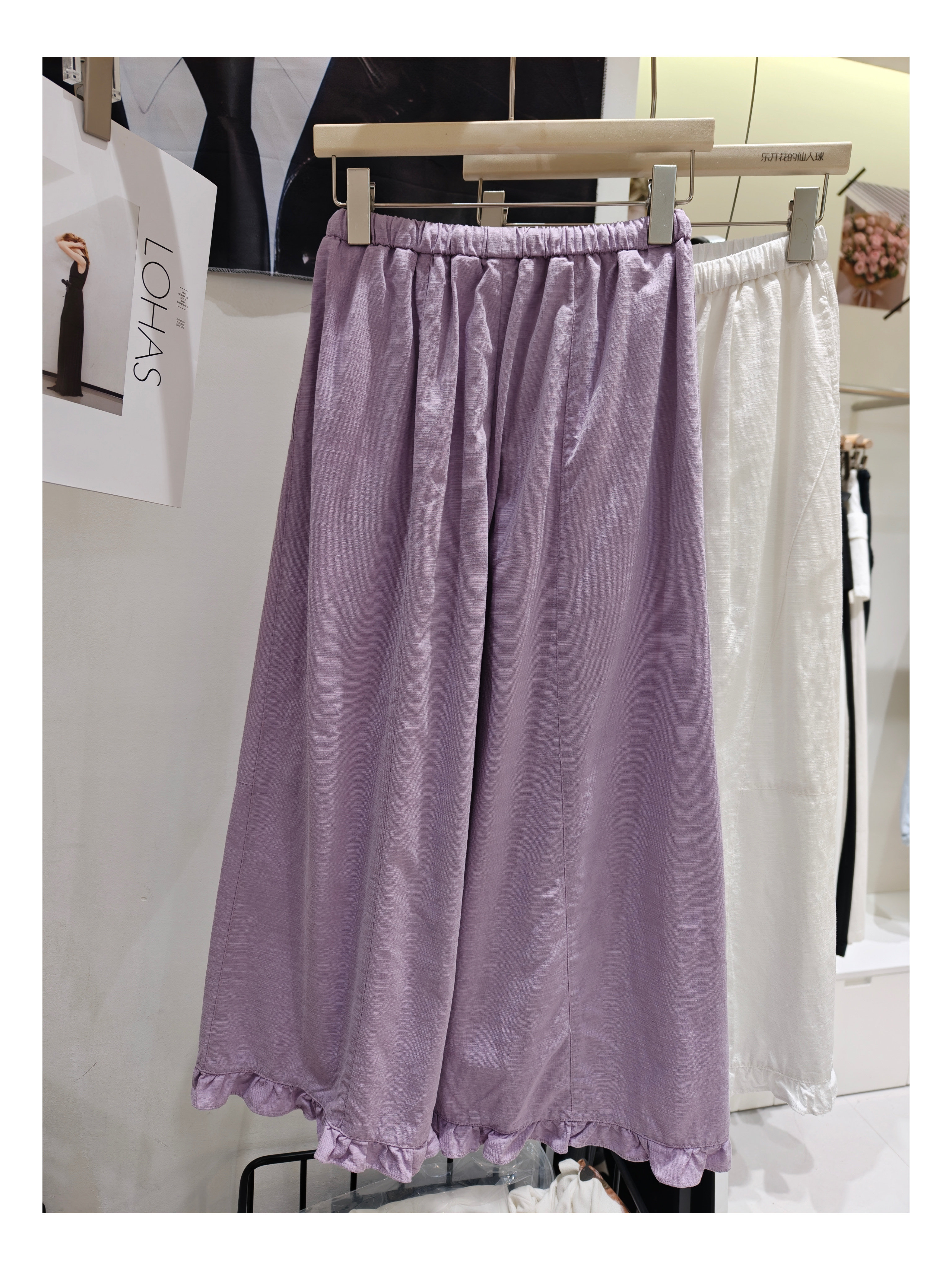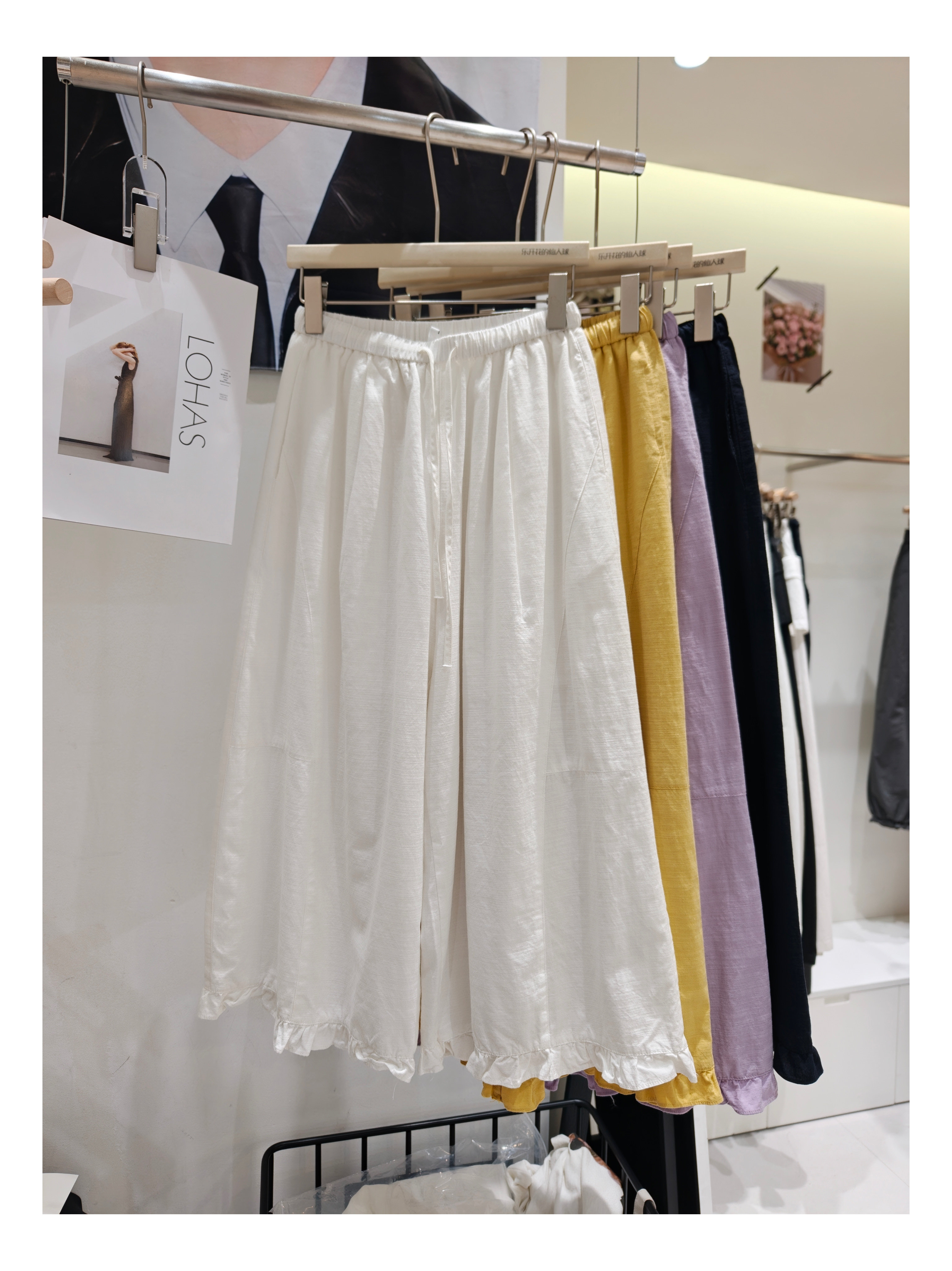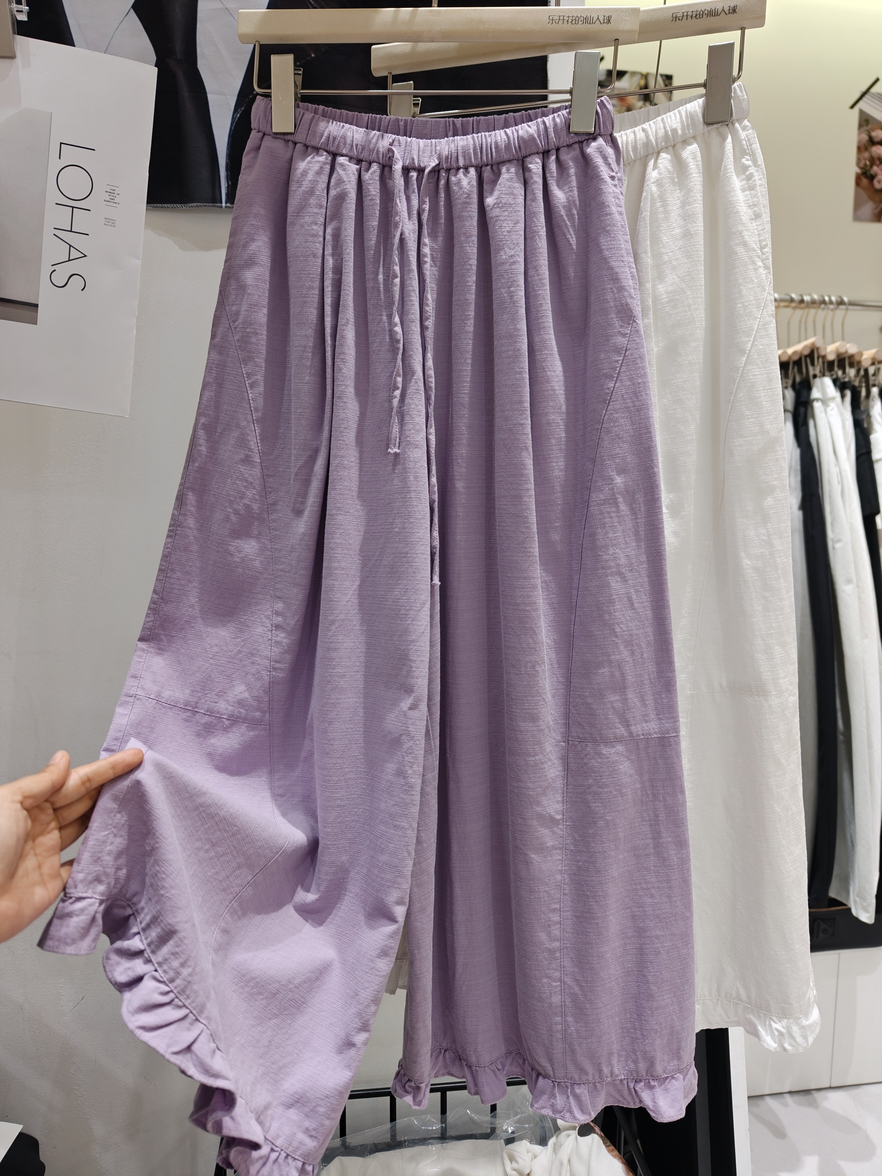 실사 빅 사이즈 바지 프릴 허리밴드 모통이 칼 와이드 레깅스 바지 봄 드레스 자이언트 잘 생긴 워크웨어 캐주얼 바지