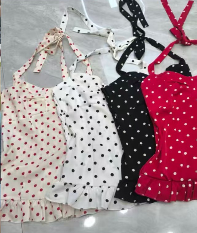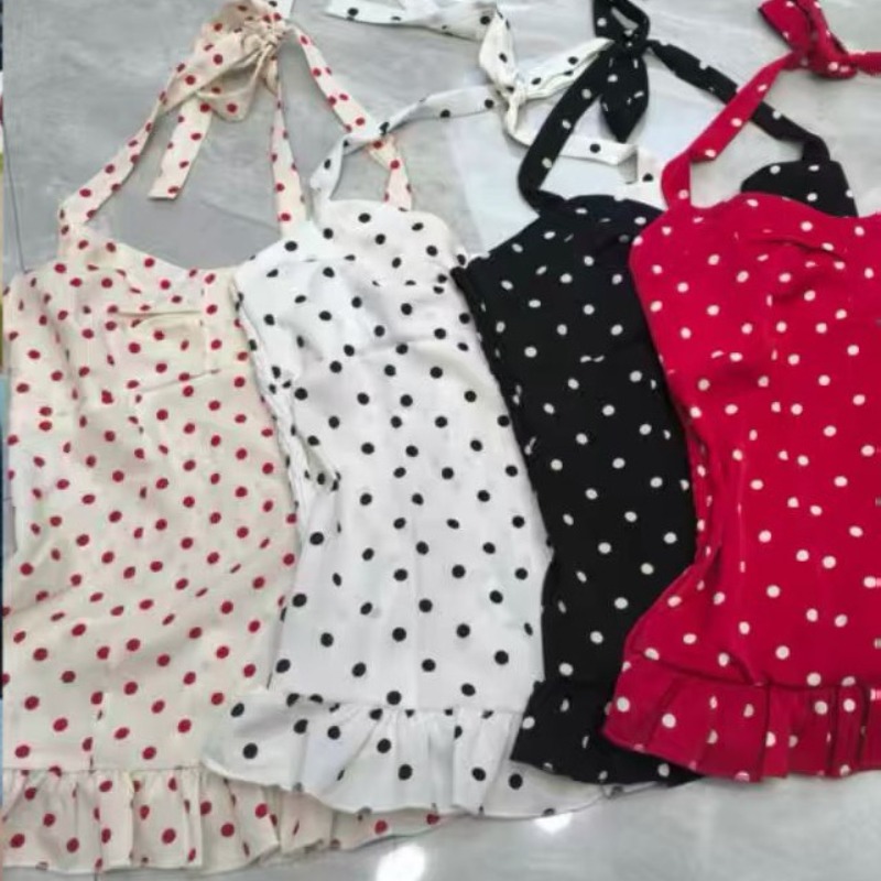 프랑스식 전원 레트로 스타일 도트 무늬 행침 목 레이스 슬립 여성 다용도 허리 수축 조끼