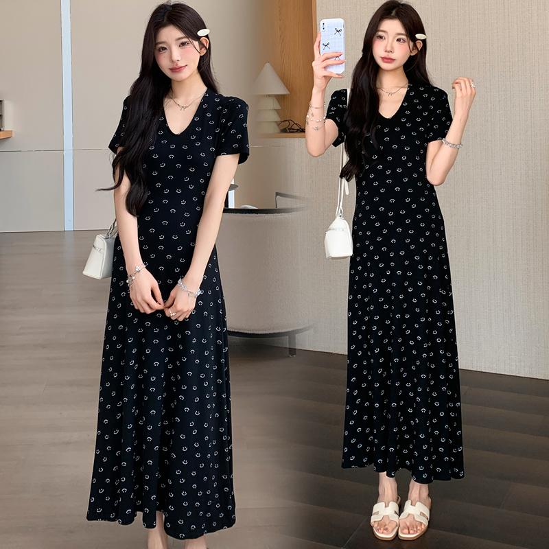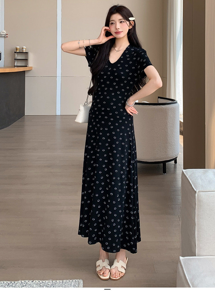 여름 신제품 품격 V넥 매운맛 엄마 빛 요리 한 바람 디스플레이 슬림 폭탄 니트 드레스