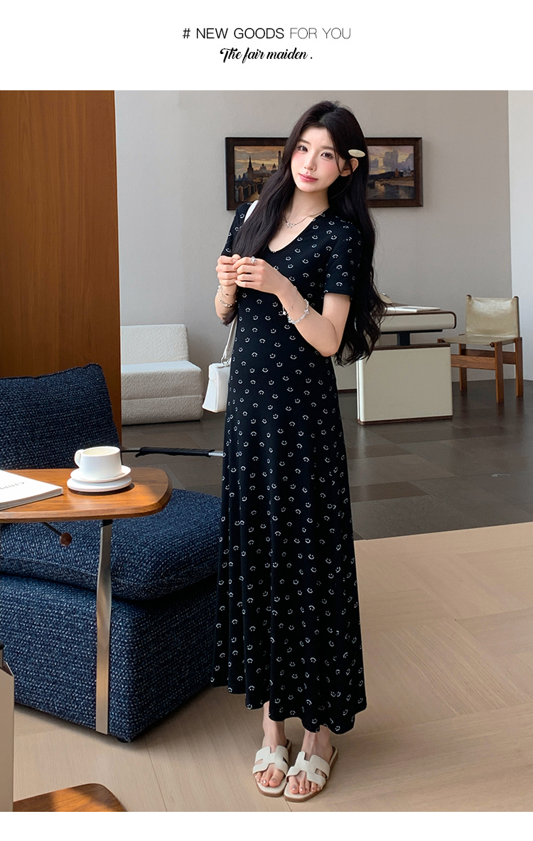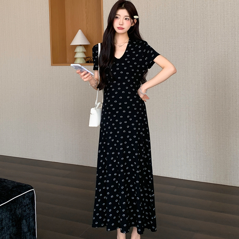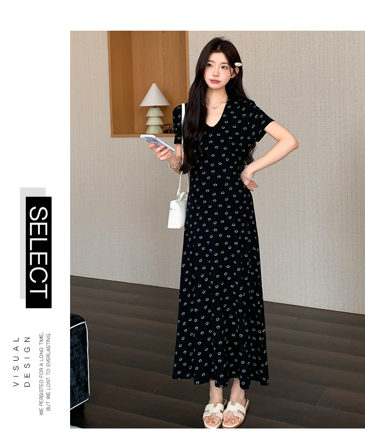 실사 여름 프랑스식 V넥 품격 임신 엄마 슬림해 보이는 드레스