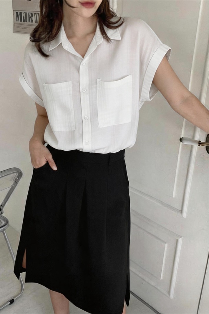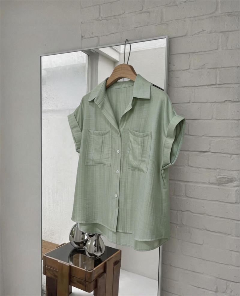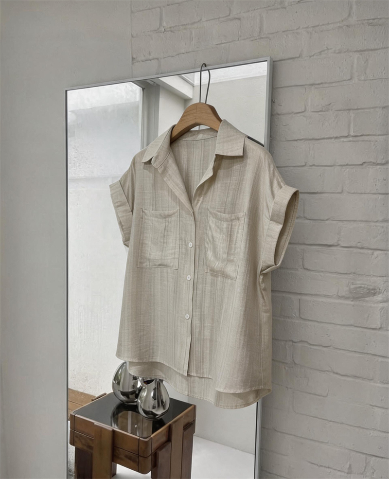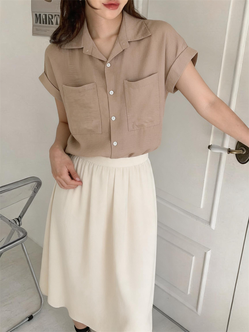실사 단색 미니멀리즘 주름 캐주얼 출퇴근 반팔 여성 셔츠 새로운 작은 대중 표지 고기 슬림해 보이는 몸매 가꾸기 맨위