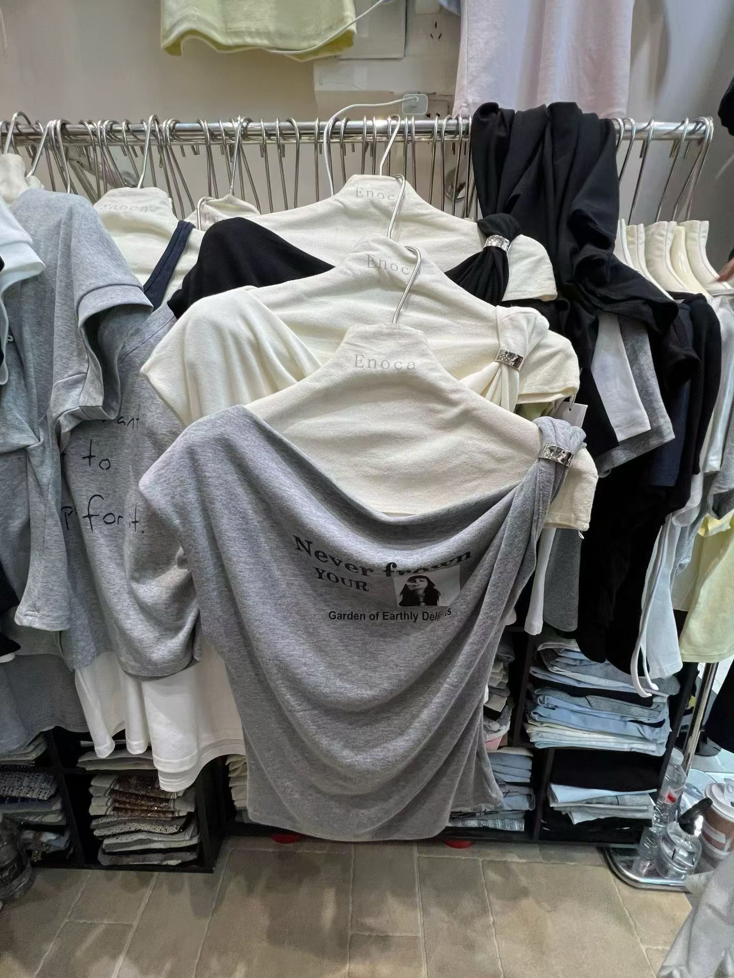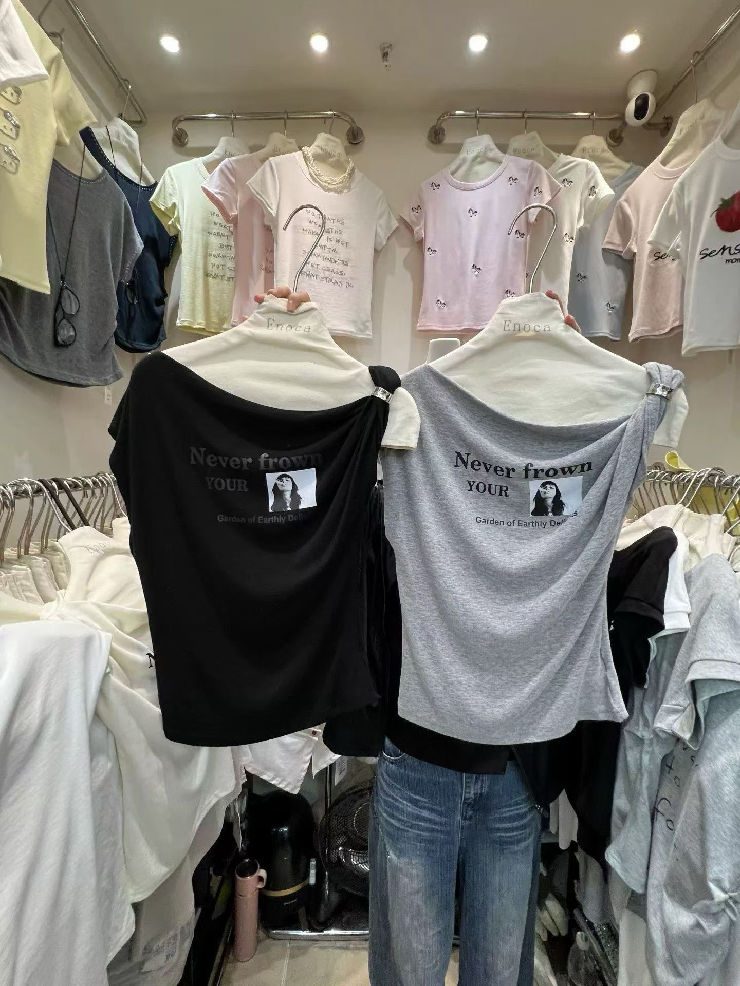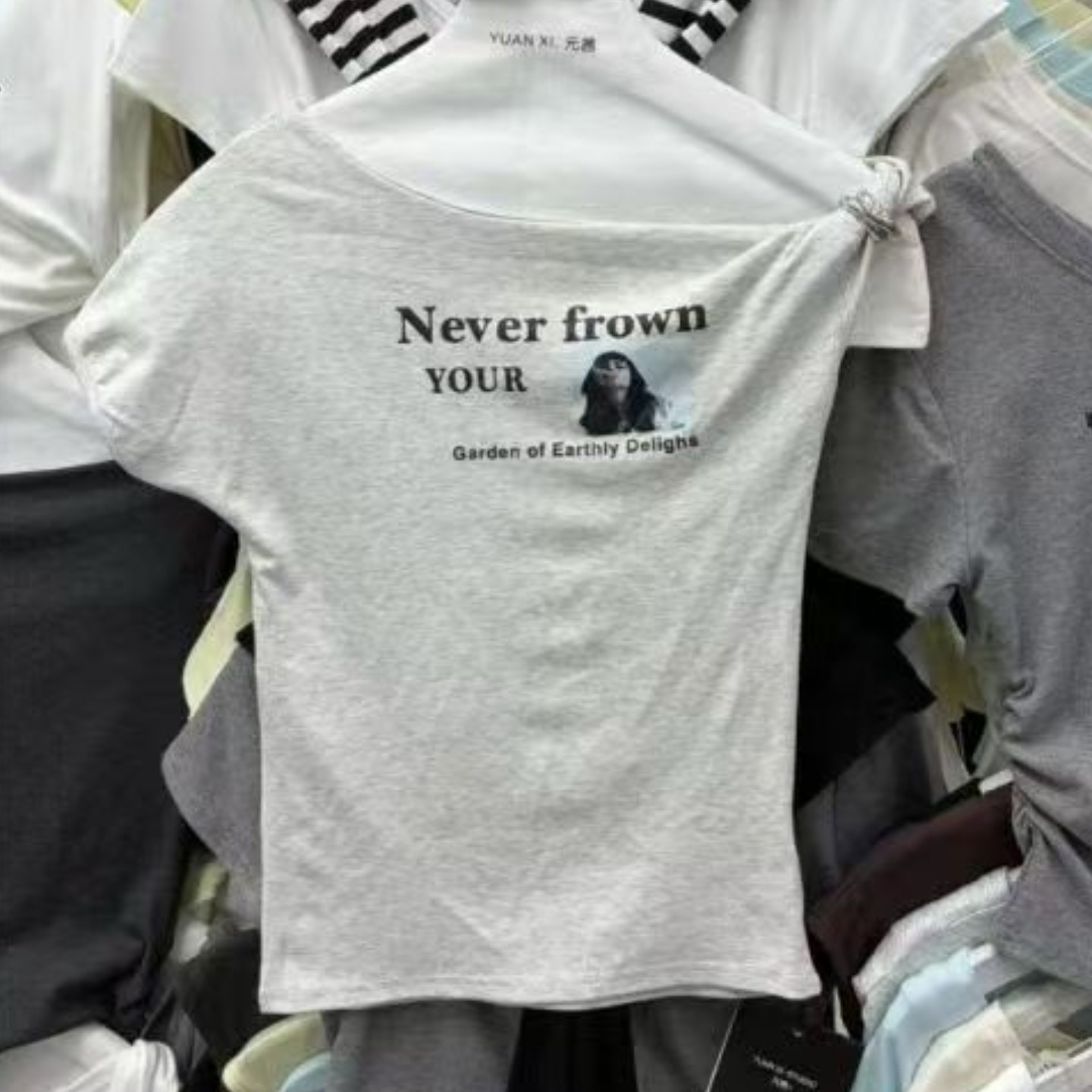 화이트 긍정적 인 어깨 반팔 티셔츠 여성 2026 봄 여름 새로운 착용 가져 가라. 단색 잘 생긴 작은 키 인사이드 가져 가라. 만나는 맨위