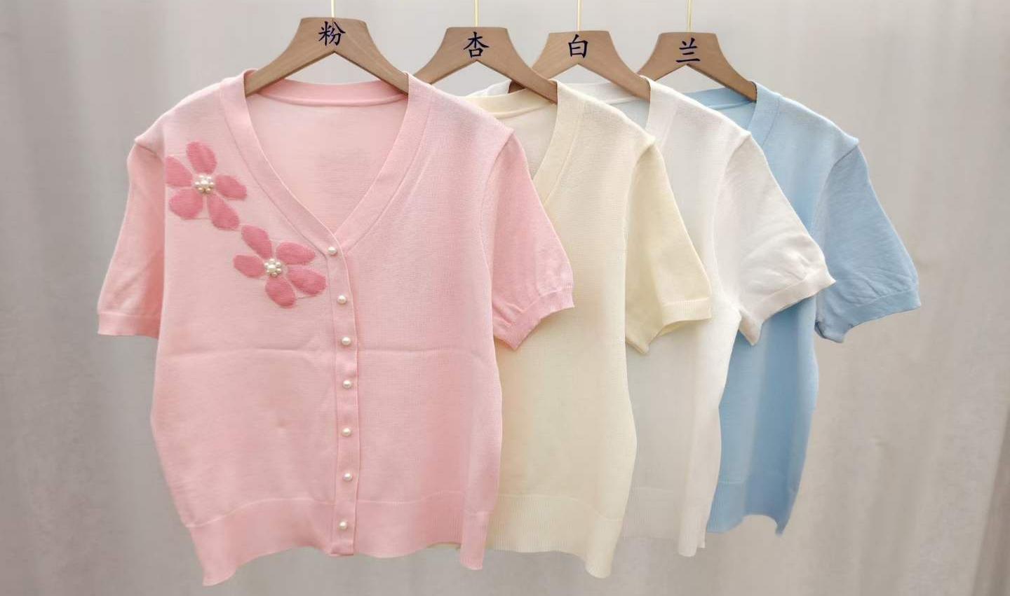 2026 년 여름 새로운 디자인 센스 달콤함 작은 샤넬 스타일 베이비 칼라 나비 매듭 3 차원 꽃 비즈 박기 니트 반팔