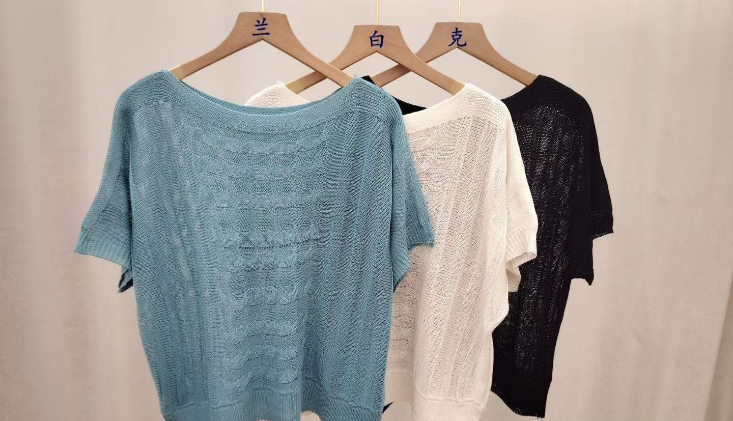 작은 꽃 자수 거품 소매 얼음 실크 니트 스웨터 여성 유럽 역 여름 새로운 여성 의류 기본 셔츠 트렌디