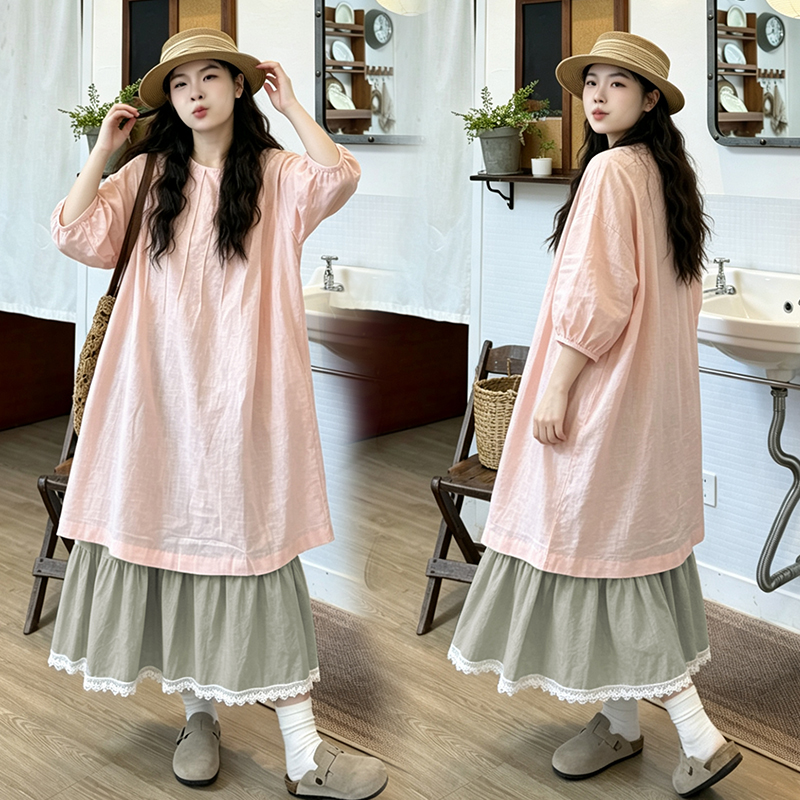 실사 임산부 여름 새로운 빅 사이즈 작은 청신 드레스