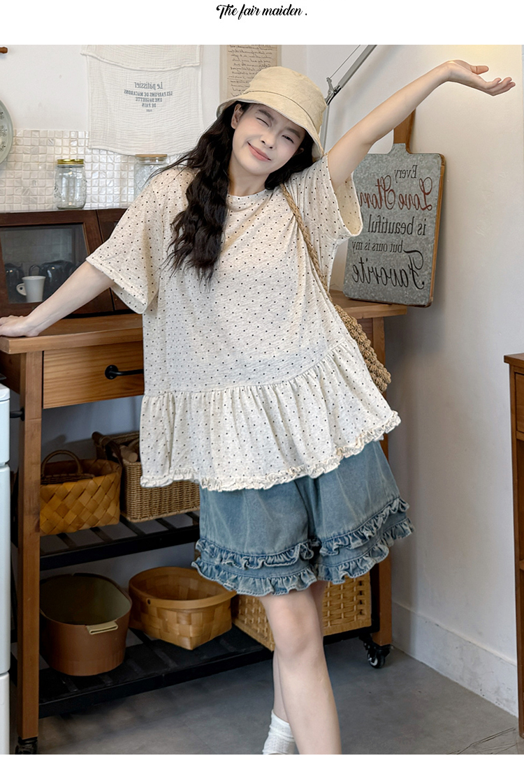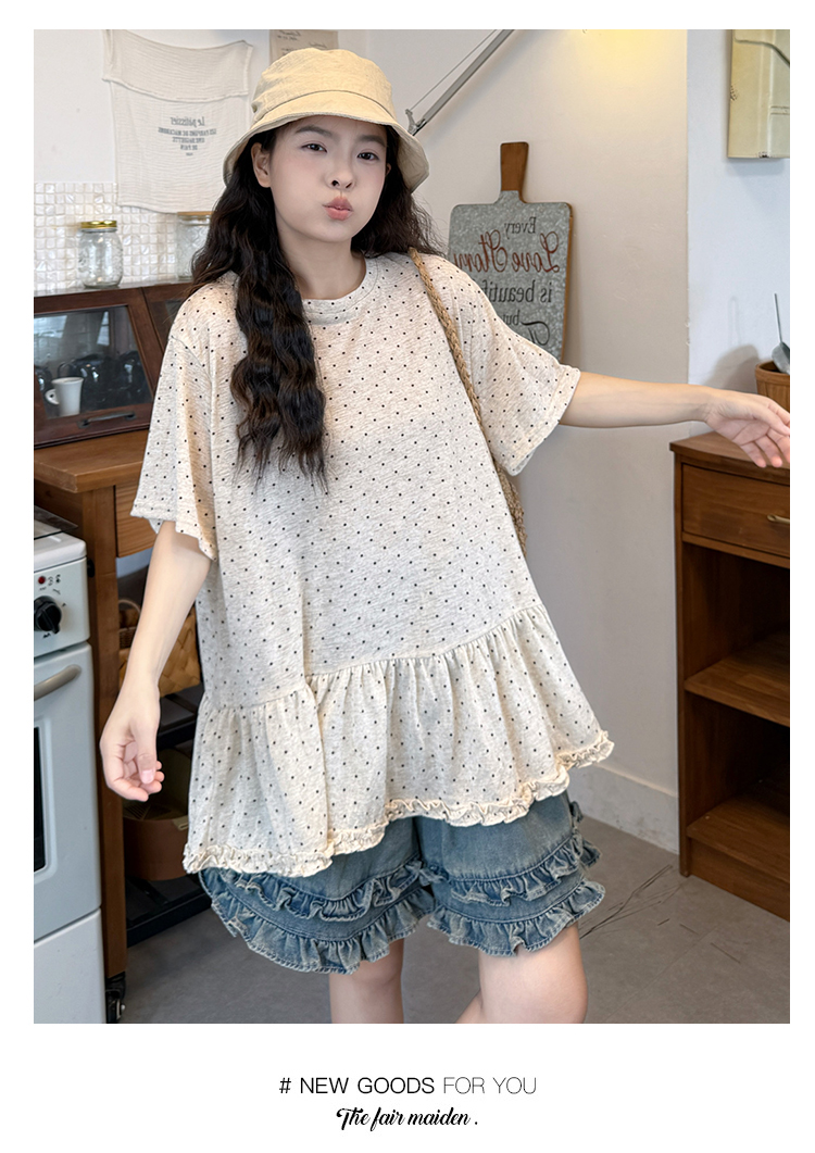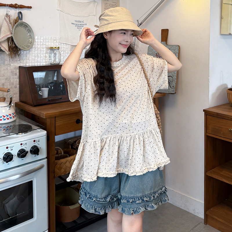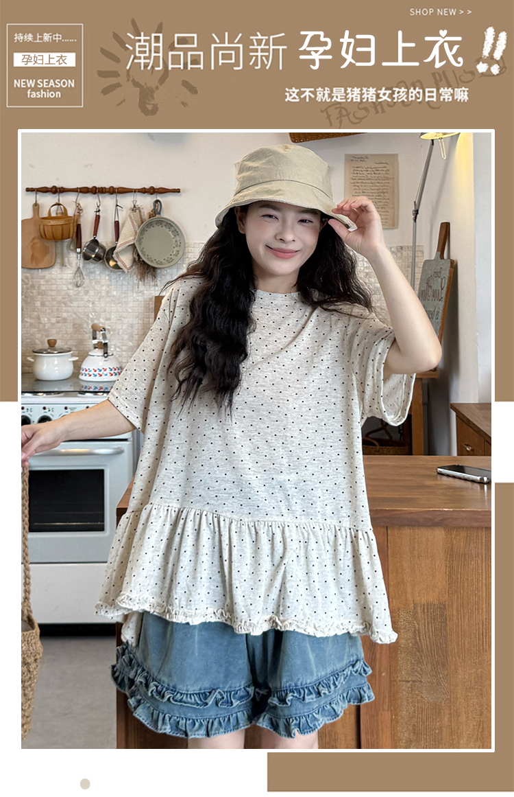 실사 2026 새로운 임산부 루즈핏 반팔 도트 무늬 t 한국 스타일 패션 짧은 t