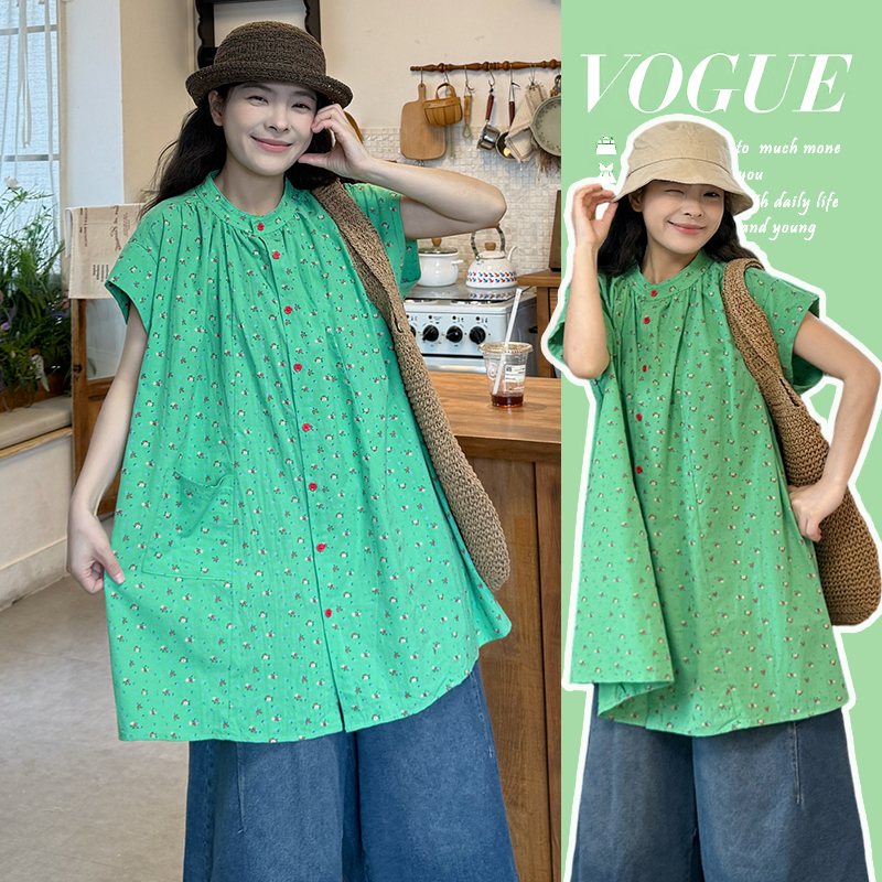 실사 2026 여름 섹션 임산부 미니멀리즘 중간 길이 스탠드 칼라 반팔 셔츠