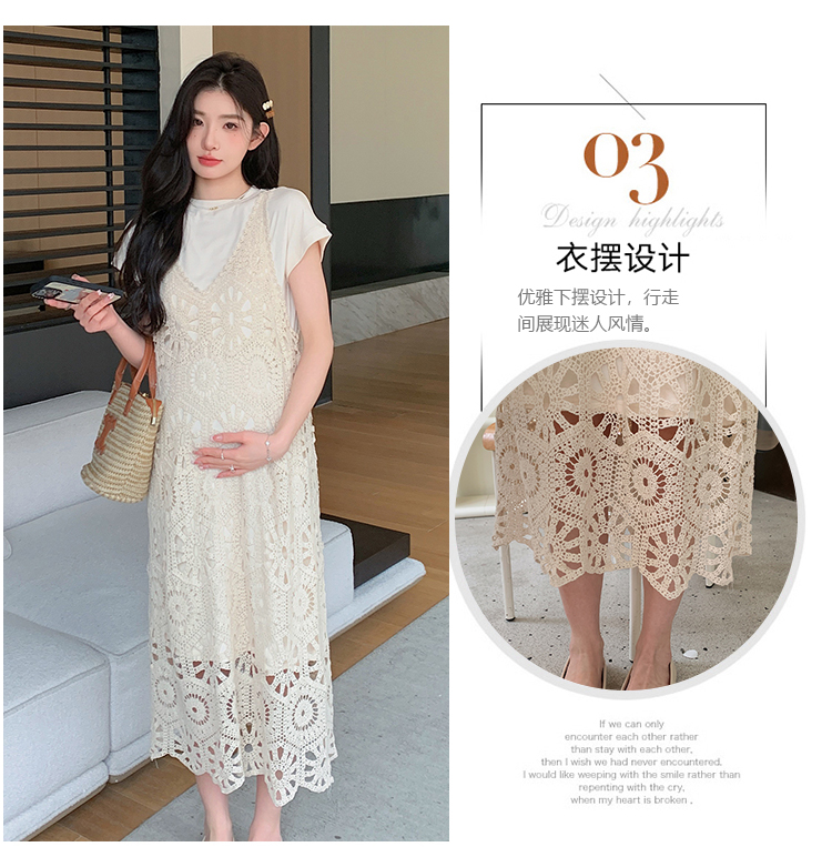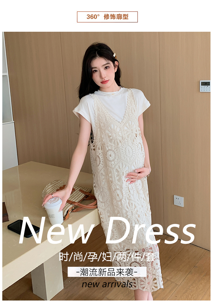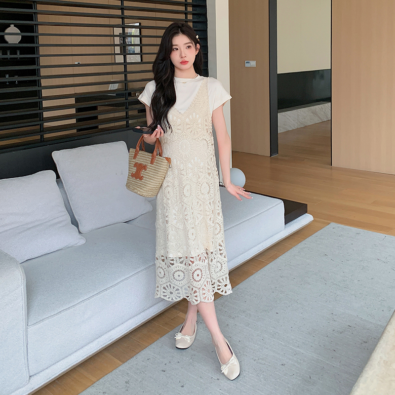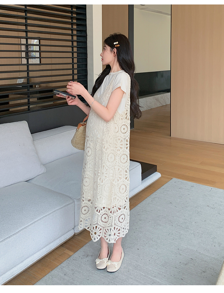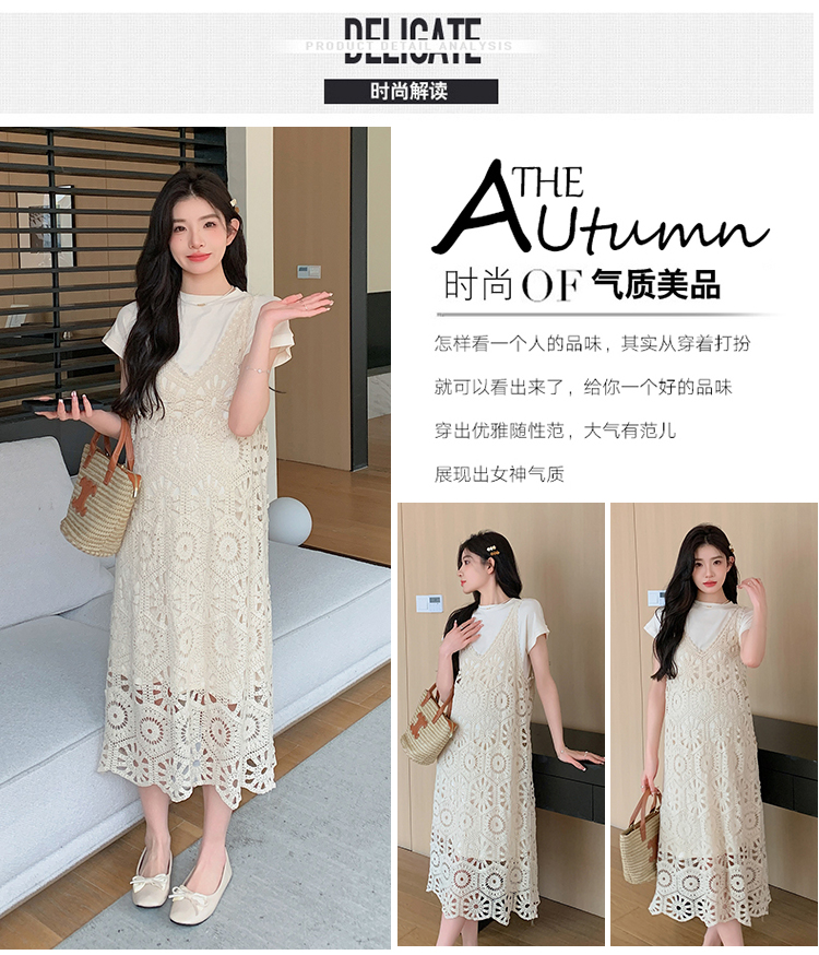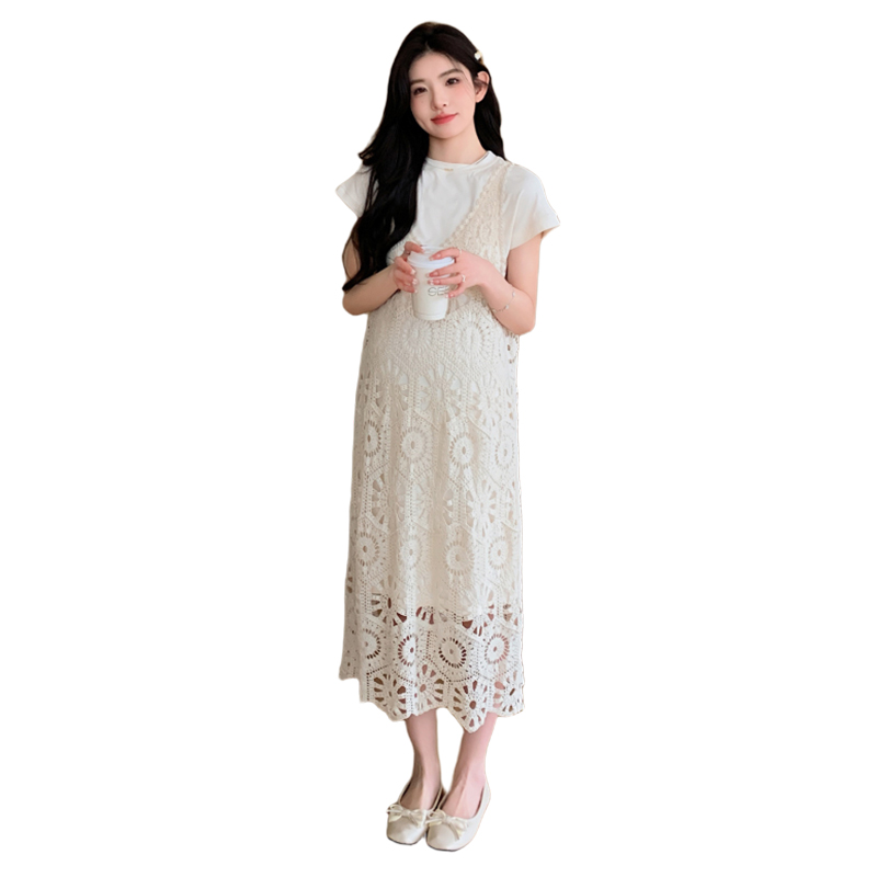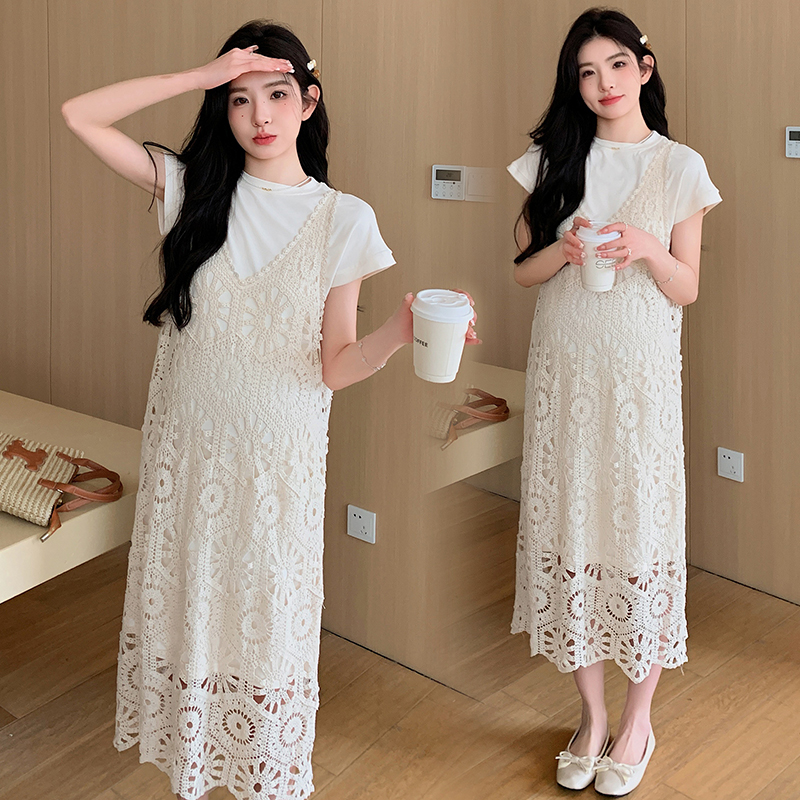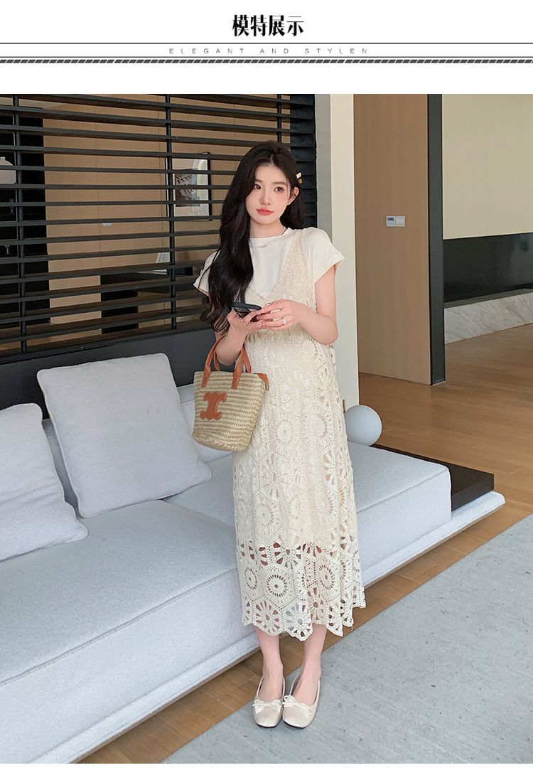 실사 임산부 여름 세트 프랑스식 안개 에 꽃 홀로우 아웃 품격 레이스 슬립 드레스 투피스 세트 트렌디