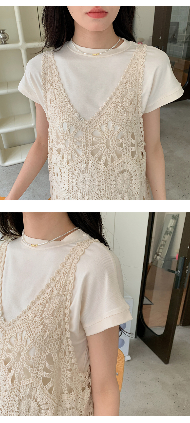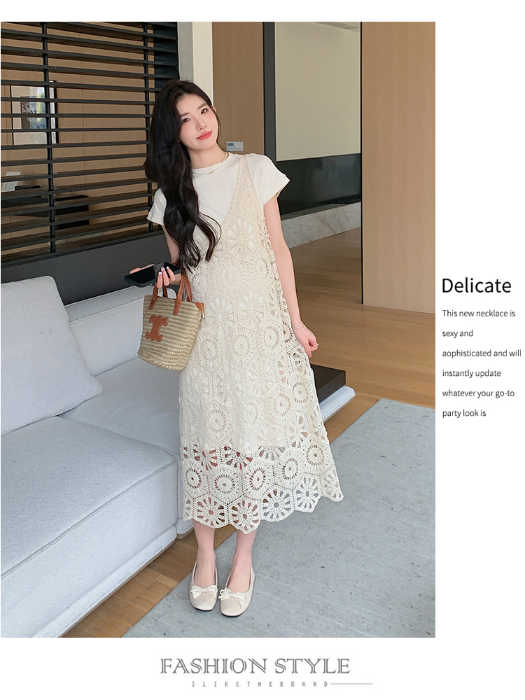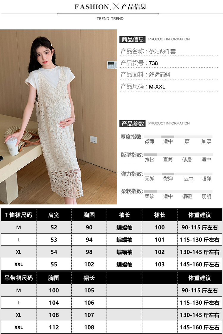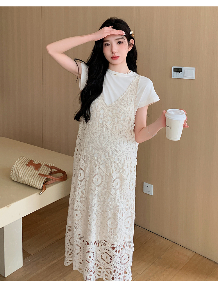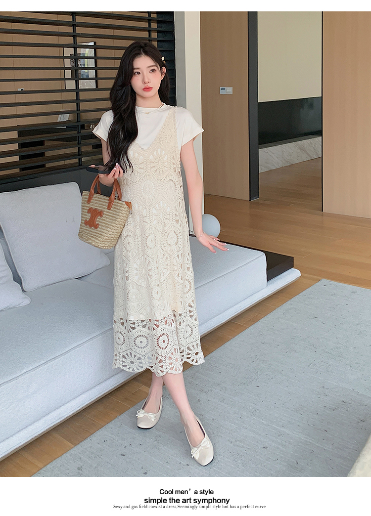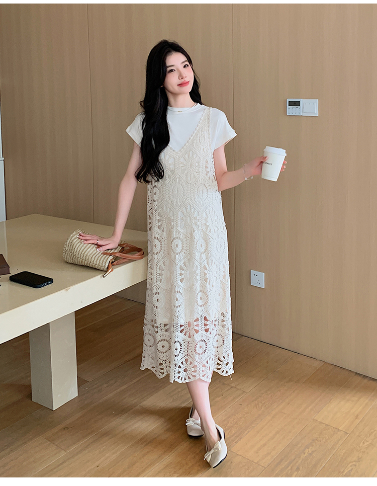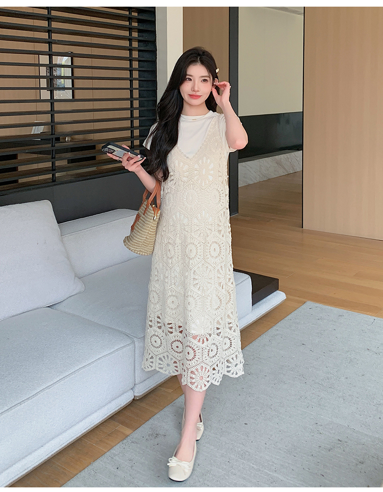 실사 임산부 여름 세트 프랑스식 안개 에 꽃 홀로우 아웃 품격 레이스 슬립 드레스 투피스 세트 트렌디