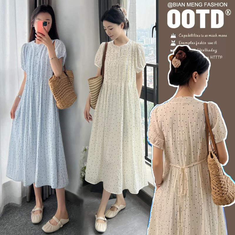 2026 여름 새로운 패션 임산부 달콤함 요정 가스 도트 무늬 연령 감소 빅 사이즈 작은 청신 품격 드레스