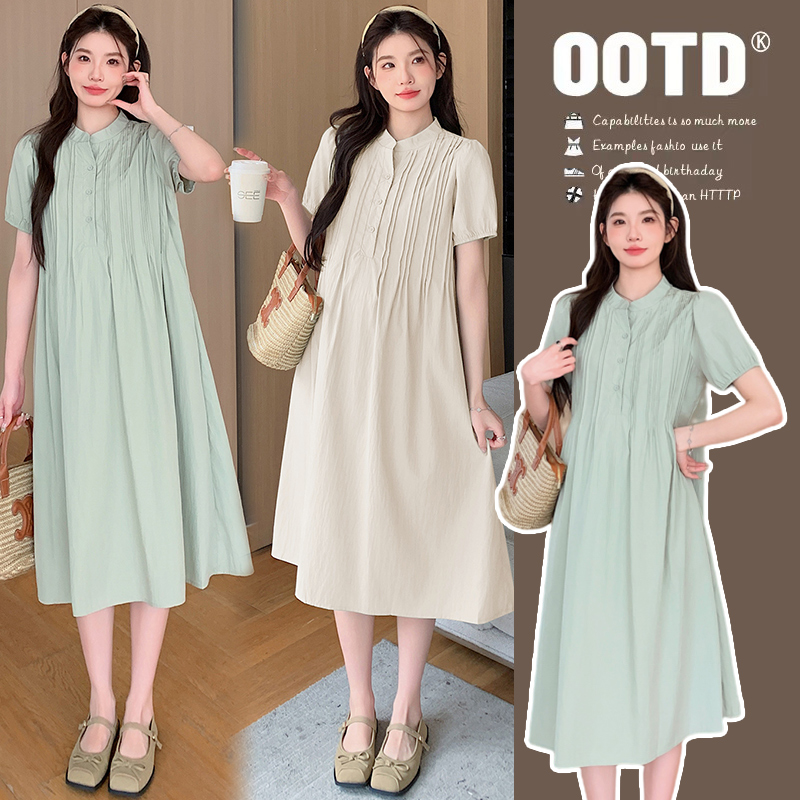 실사 임산부 여름 드레스 한국 스타일 패션 루즈핏 디자인 센스 플리츠 품격 프랑스식 미니멀리즘 휴가 드레스