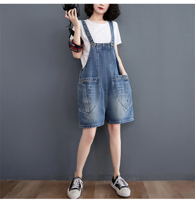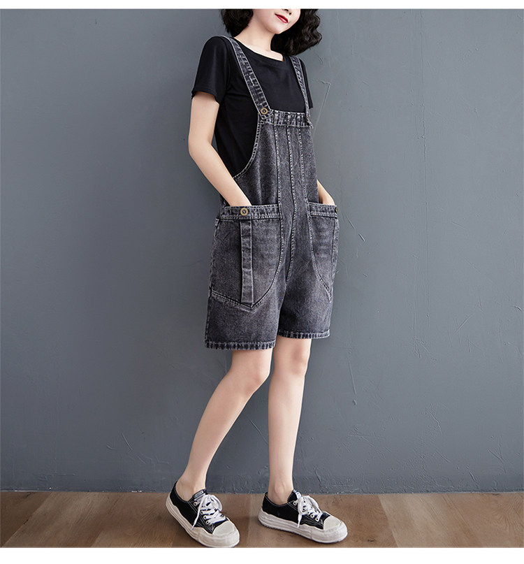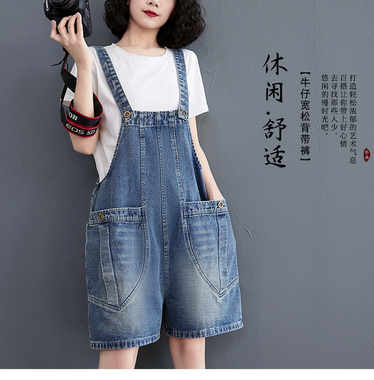 데님 멜빵 반바지 여성 여름 2026 새로운 한국 스타일 학생 연령 감소 슬립 올인원 바지 루즈핏 넓은 다리 오부 바지