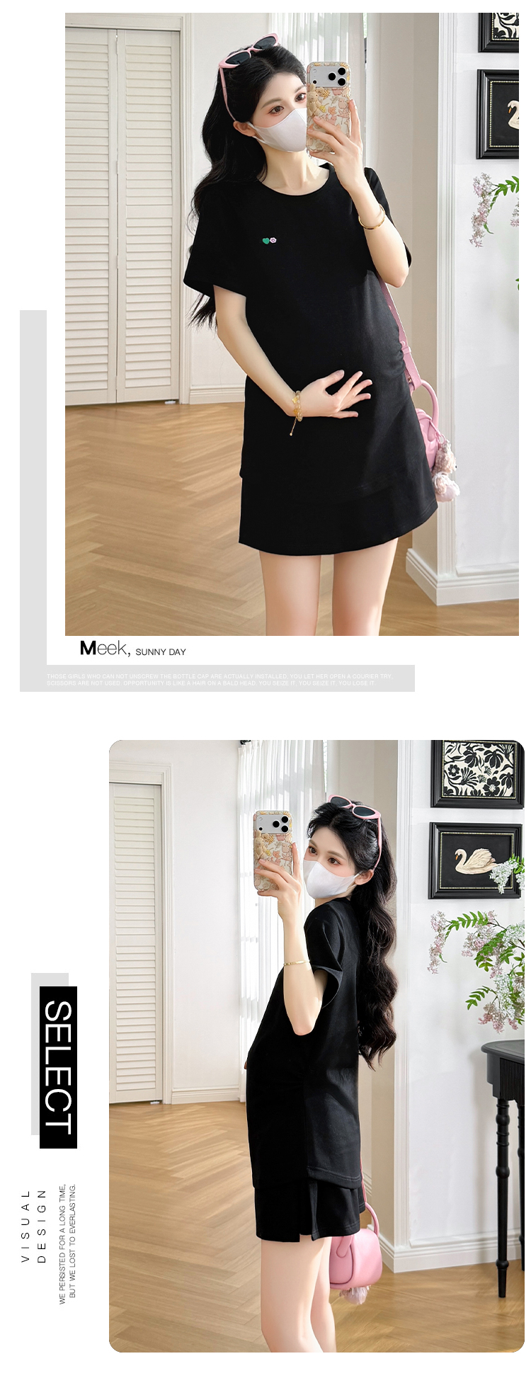 실사 작은 동영상 여름 2026 만화 반팔 티셔츠 치마 여성 다용도 캐주얼 반소매 롱 코트 임산부 드레스