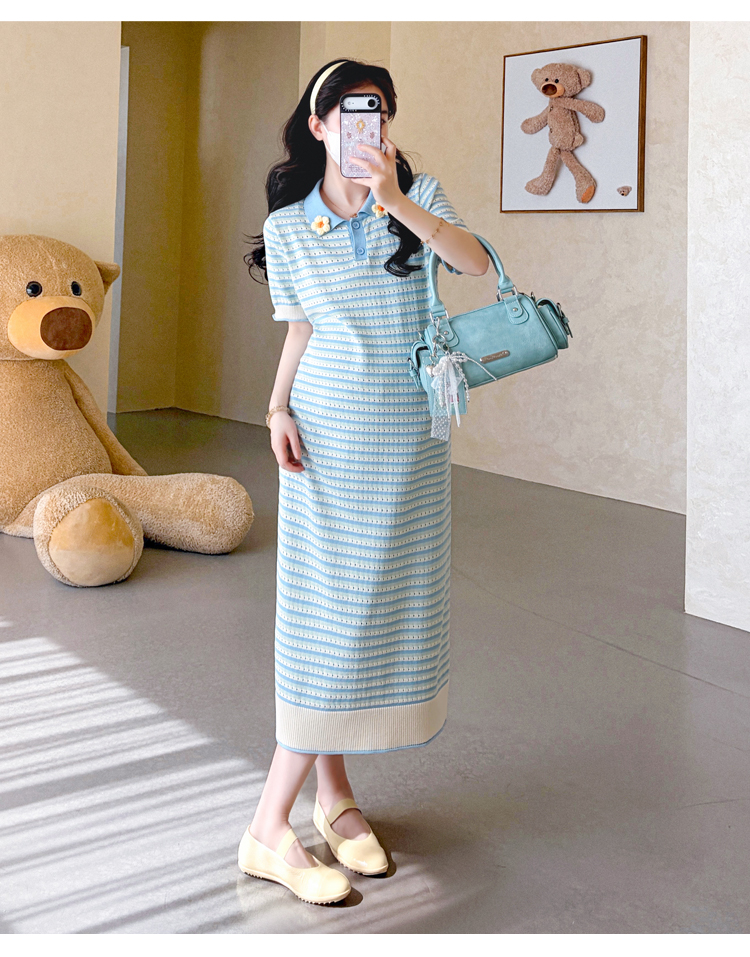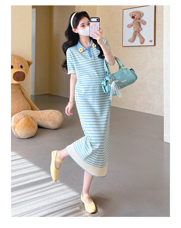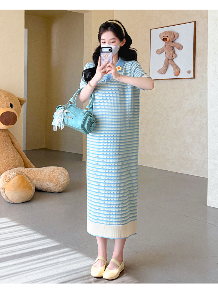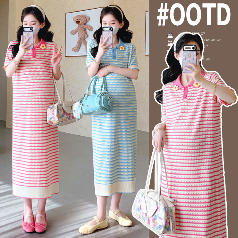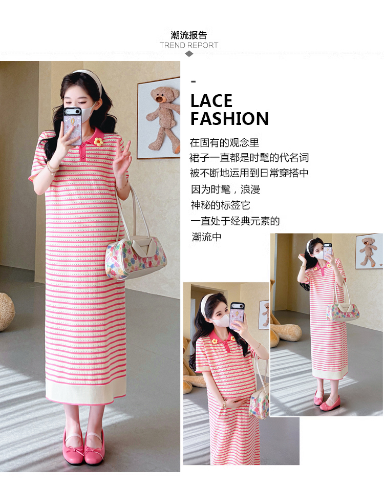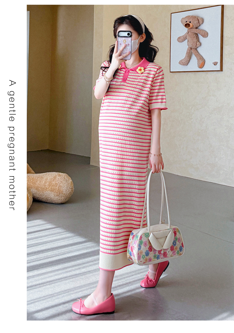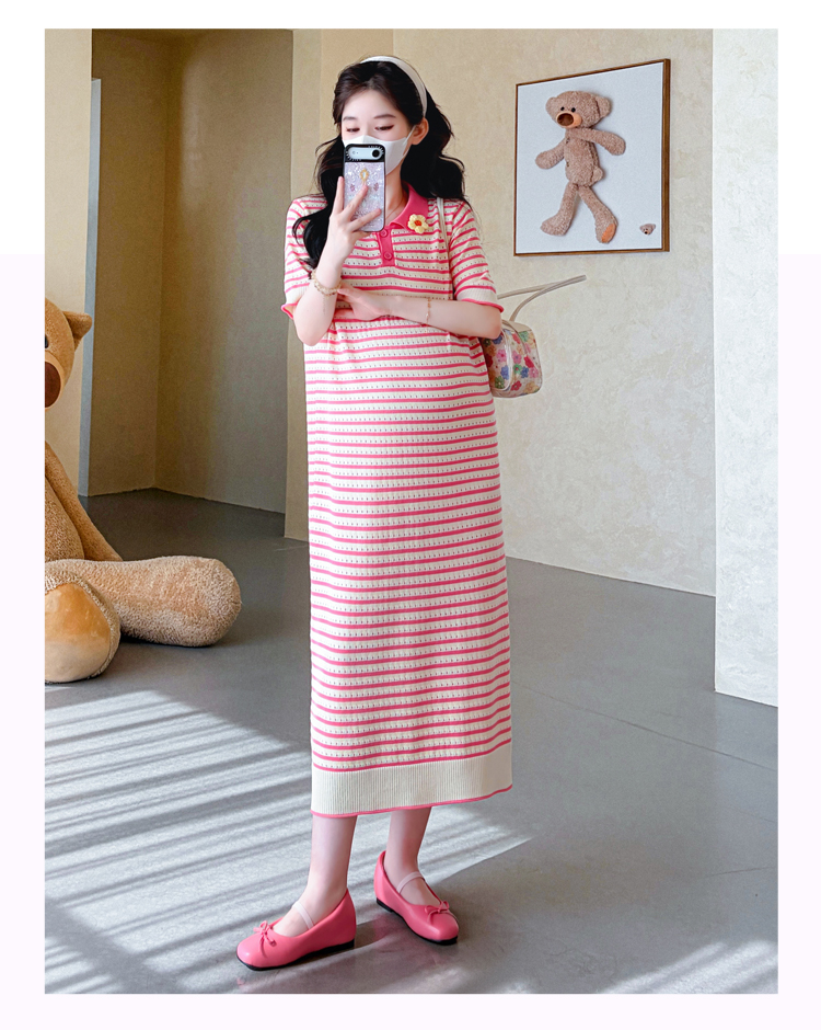 실사 새로운 임산부 여름 드레스 스트라이프 니트 임산부 조끼 스커트 한국 스타일 임산부 드레스 출산 착용