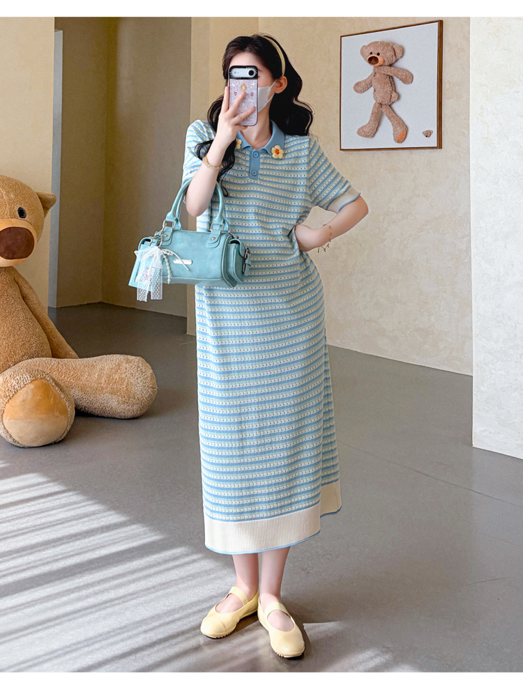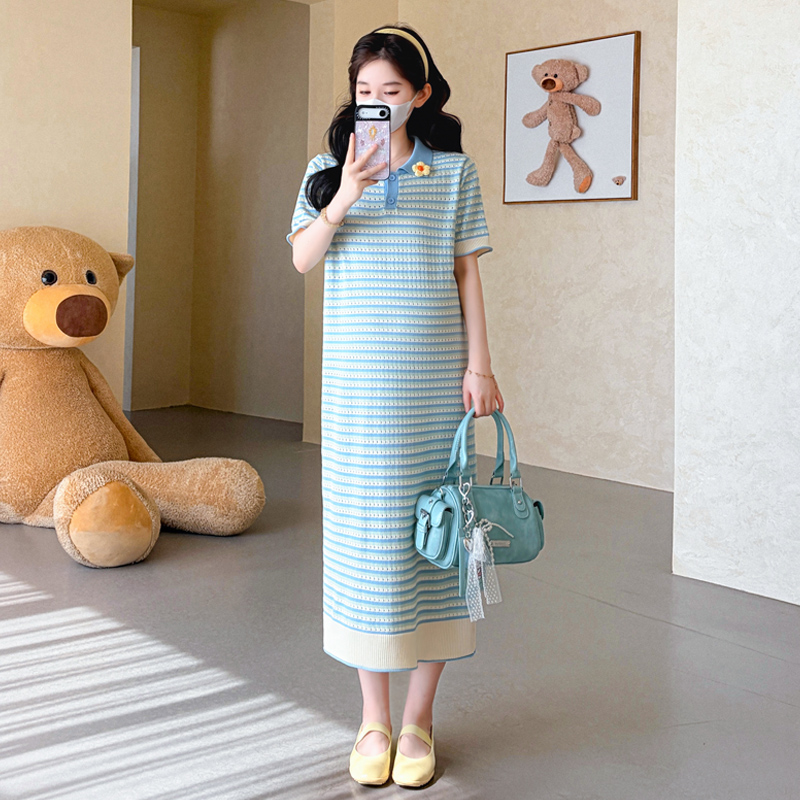 실사 2026 새로운 임산부 여름 드레스 한국 스타일 연령 감소 니트 임산부 드레스 루즈핏 빅 사이즈 게으른 출산 스커트