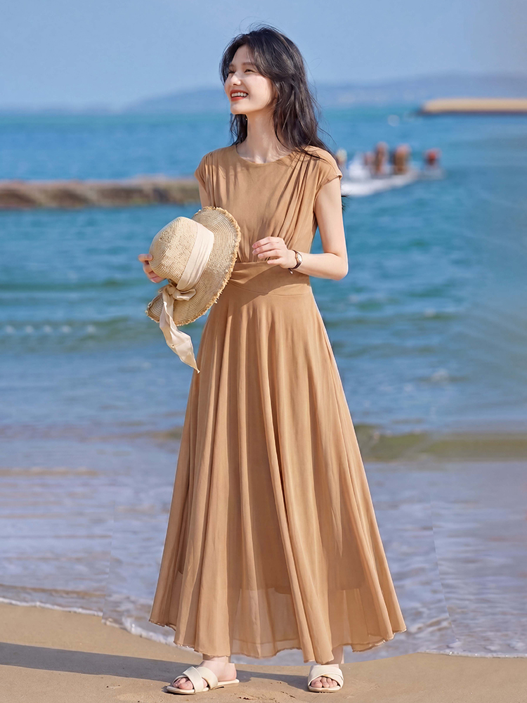 2026 여름 새로운 포함 뽕나무 누에 실크 품격 우아함 바람 수신 Pleat 슬림해 보이는 페이크 레이어드 한 마디 드레스