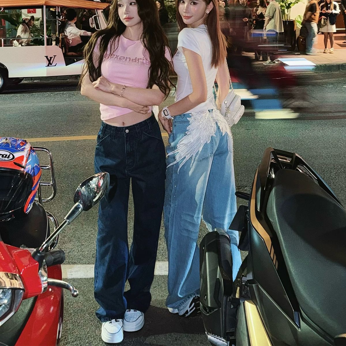 아메리칸 레트로 거친 가장자리 하트 스트레이트 청바지 바지 여자 2026 여름 새로운 디자인 센스 넓은 다리 길이 바지