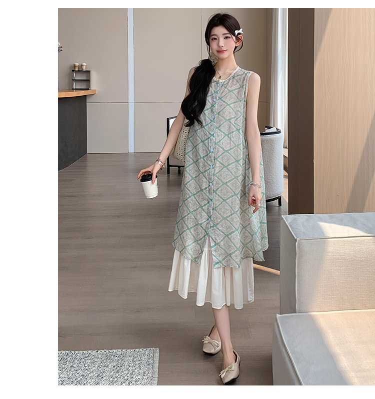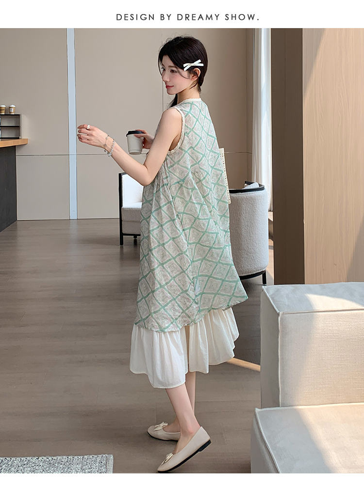 실사 여름 새로운 디자인 센스 허리 수축 슬림해 보이는 니트 조끼 임산부 드레스