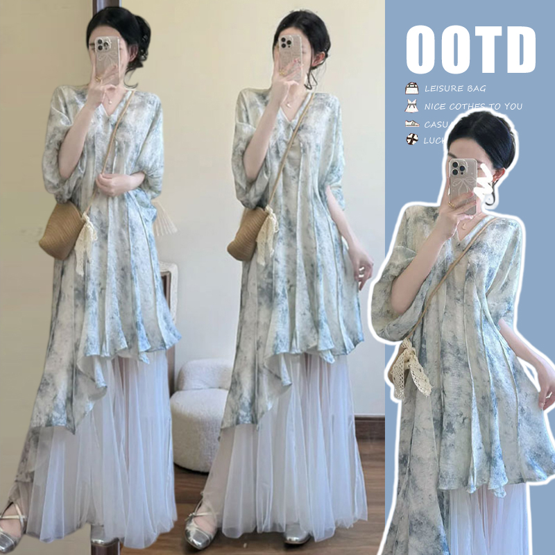 oker 챕터 쉘 도트 무늬 프릴 반신 스커트 요정 치마 주간 실크 한 부서 26 조기 봄 여름 새로운 한국 스타일 세트