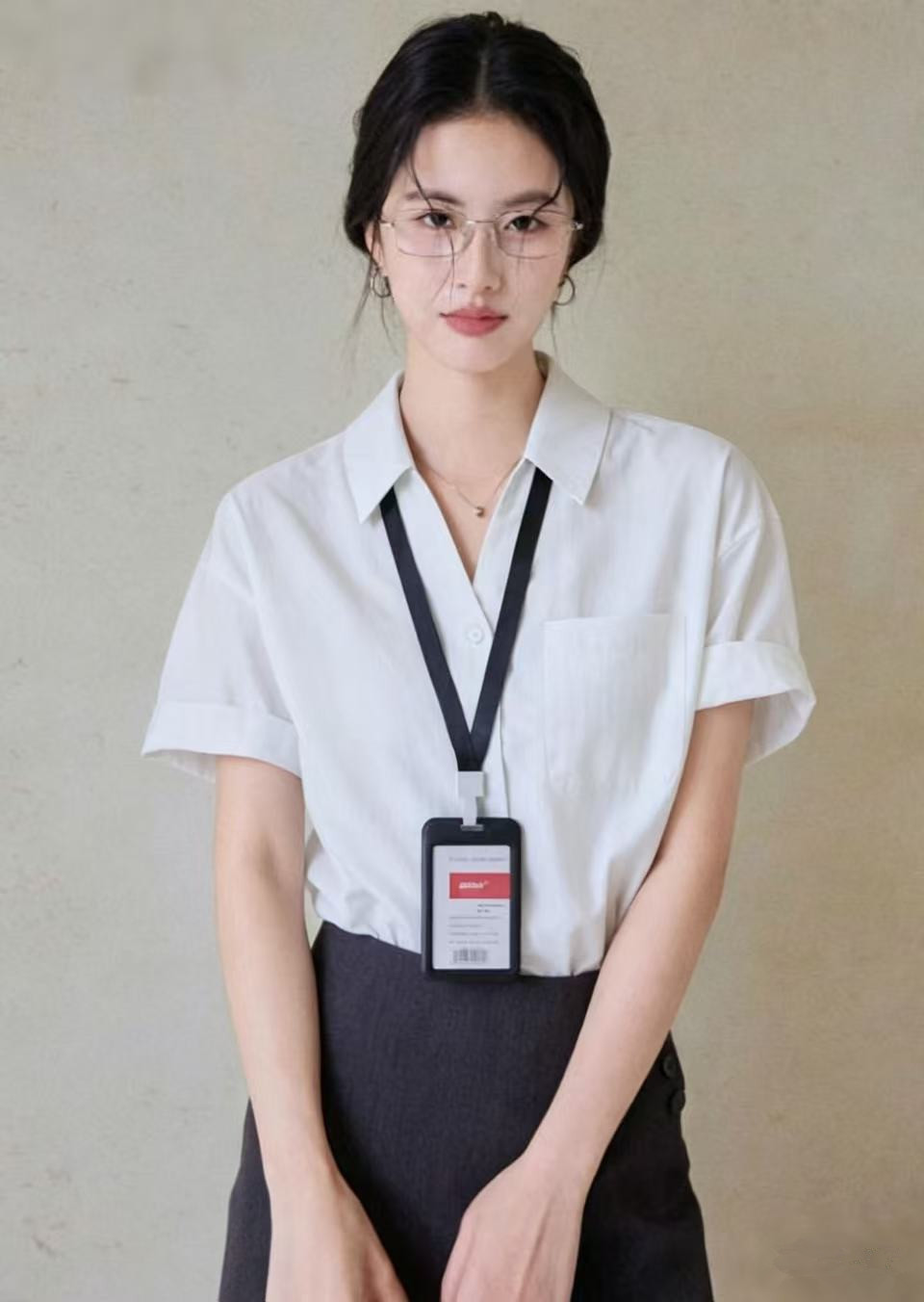 아니요 실사 화이트 반팔 여성 셔츠 프랑스식 품격 출퇴근 V넥 맨위 여성 면접 비즈니스웨어