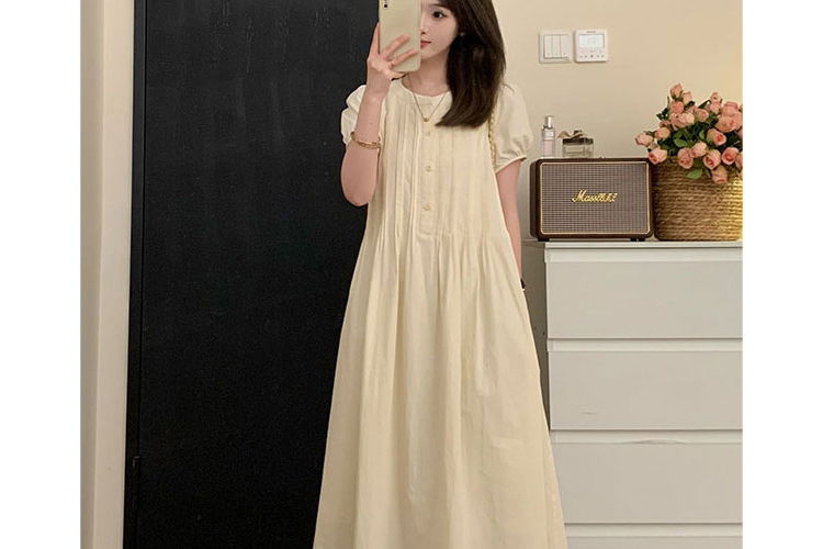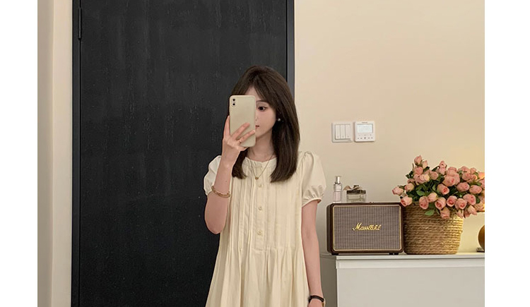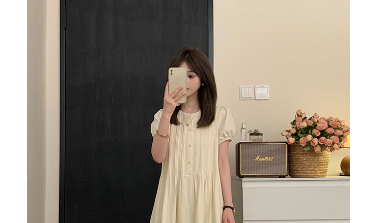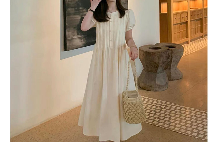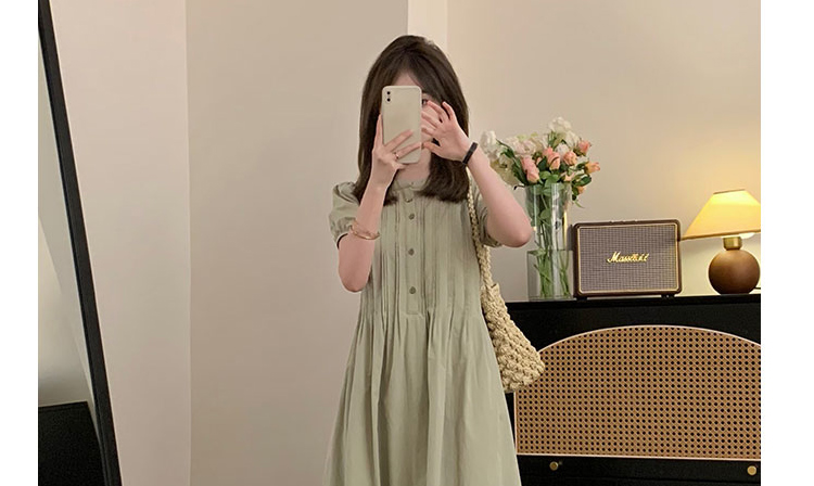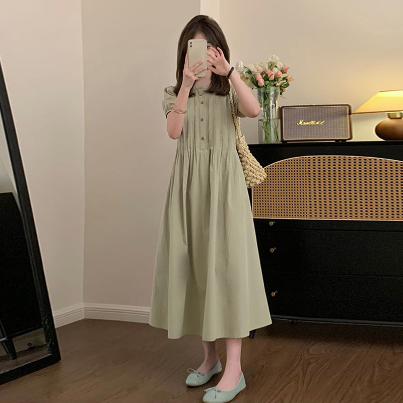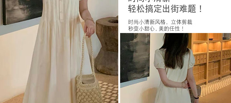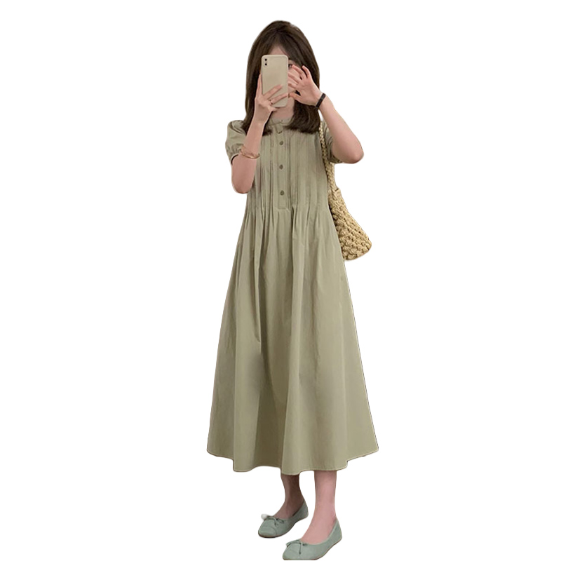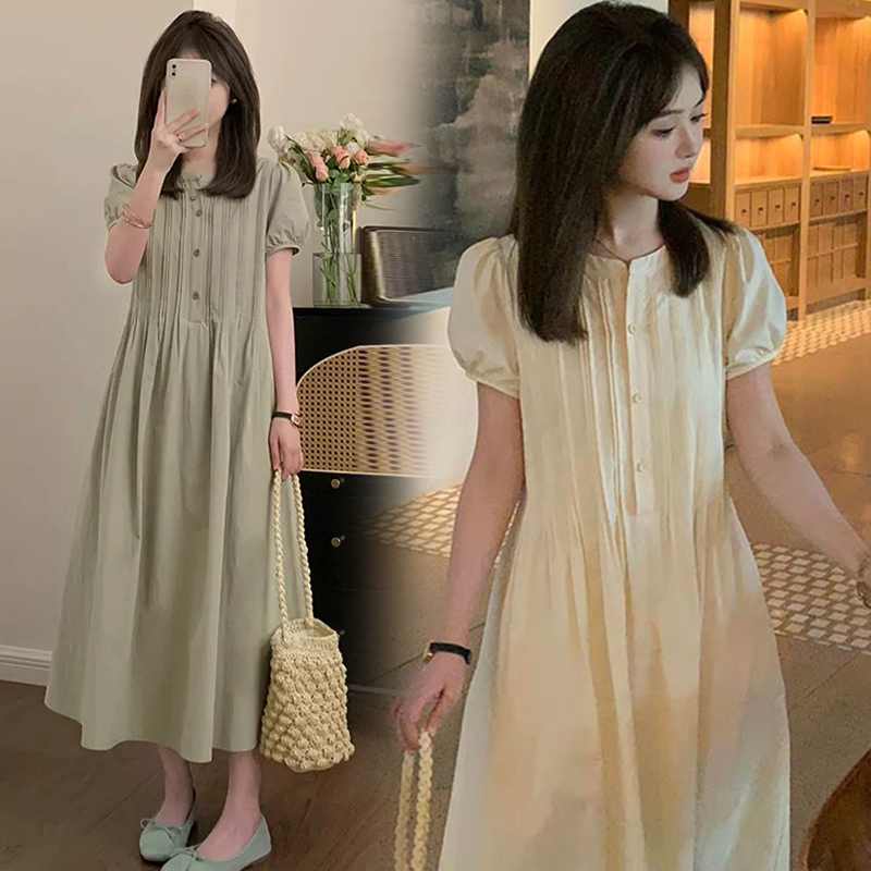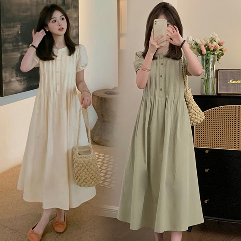 실사 임산부 여름 드레스 한국 스타일 패션 루즈핏 디자인 센스 플리츠 품격 프랑스식 미니멀리즘 휴가 드레스